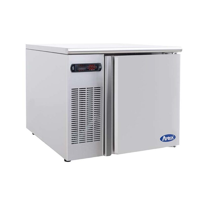 Abatitor, capacitate 3 tavi GN 1/1 - 400×600 (74 Lt), capacitate de a raci 3.3 kg de alimente de la +90°C la +3°C in doar 90 de minute per tava, poate congela 1.7 kg de alimente de la +90°C la -18°C in 240 de minute per tava, pastrand gustul, textura si valoarea nutritiva, structura inox, racire ventilata, gaz refrigerant R290 Propan - GWP3, grosimea izolatiei 70 mm, pe roti, greutate 72 kg.