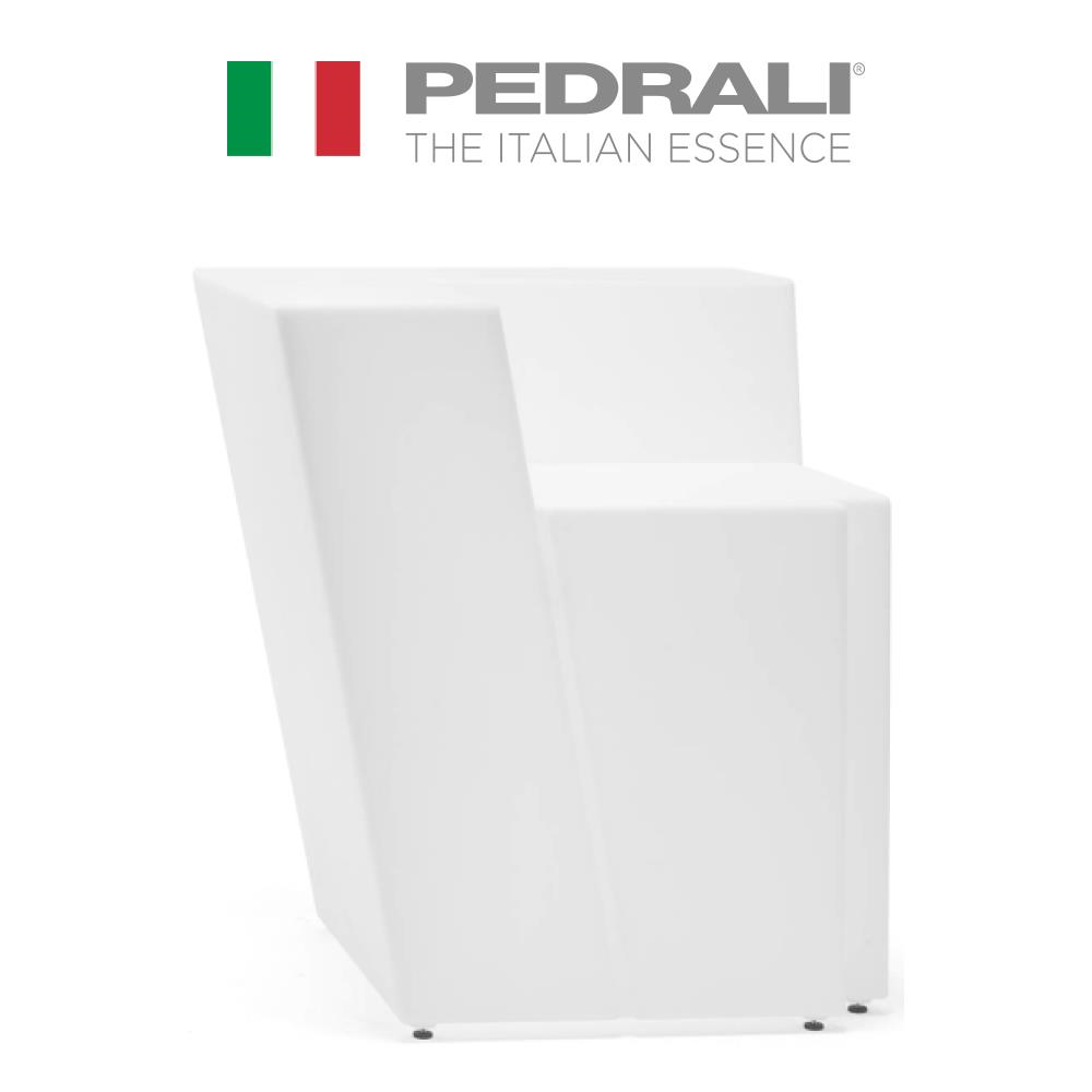 Banc de bar iluminat de colt model Oblique, structura polietilena, culoare alba, rezistent la exterior.