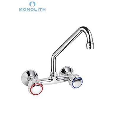Baterie cu doua intrari, cu robineti rotunzi, montare perete - Monolith