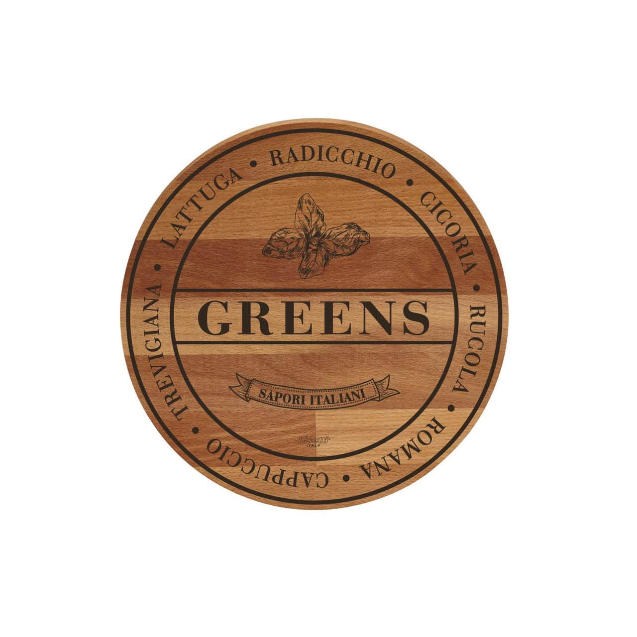 Blat tocator rotund din lemn inscriptionat "Greens" - Bisetti