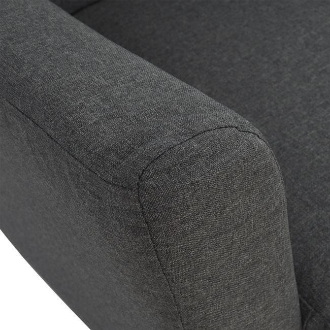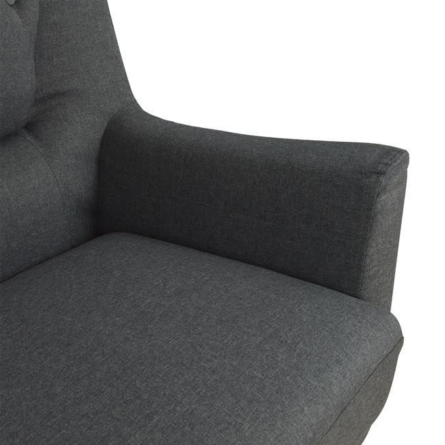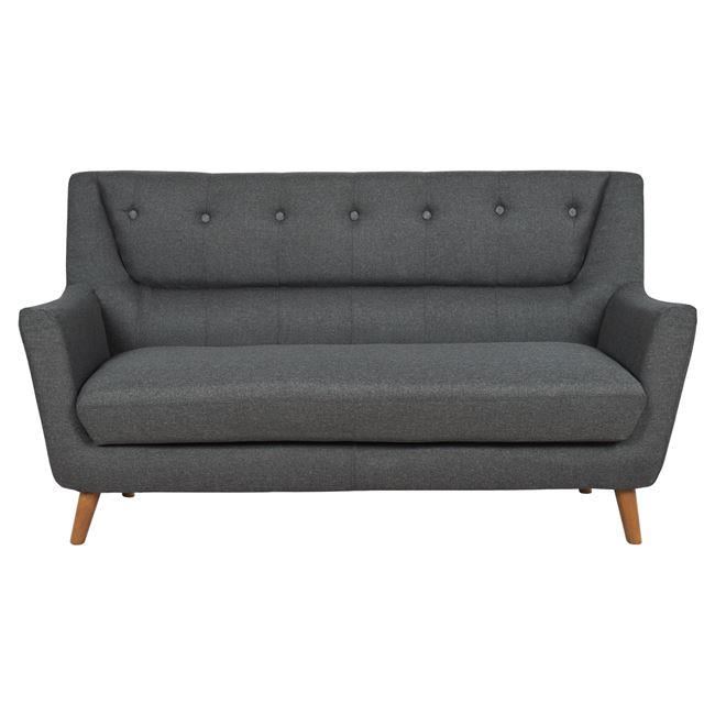 Canapea cu 3 locuri Carusel, cadru format din lemn, acoperit cu un material textil gri decorat cu butoane, influente Pop Art.