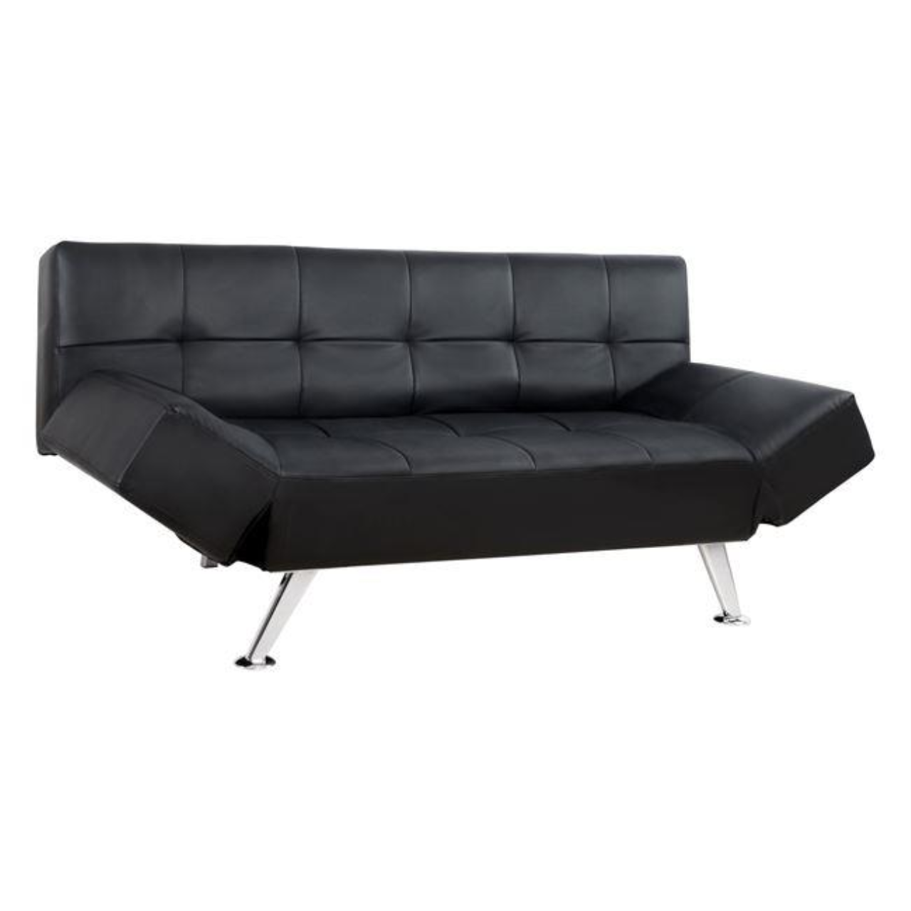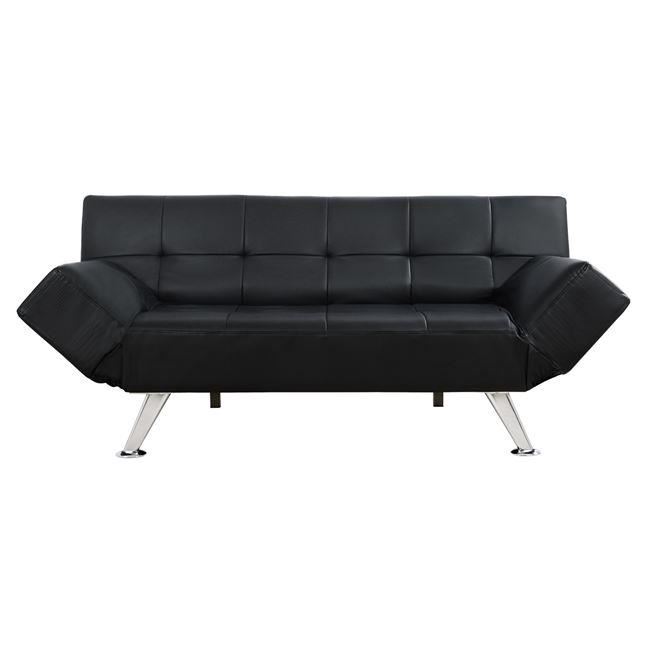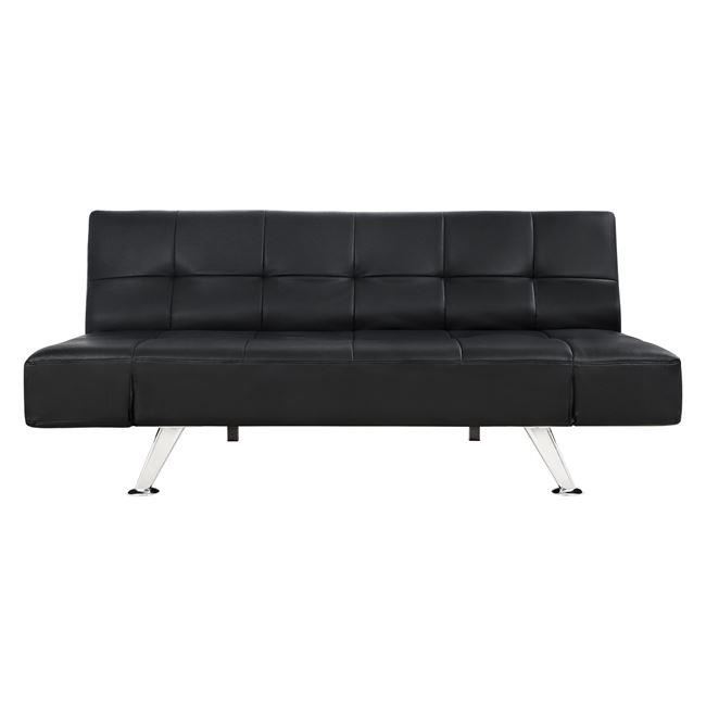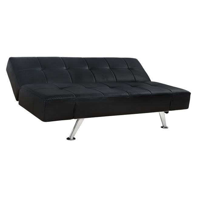 Canapea extensibila din piele de culoare neagră care se transforma ușor într-un pat și