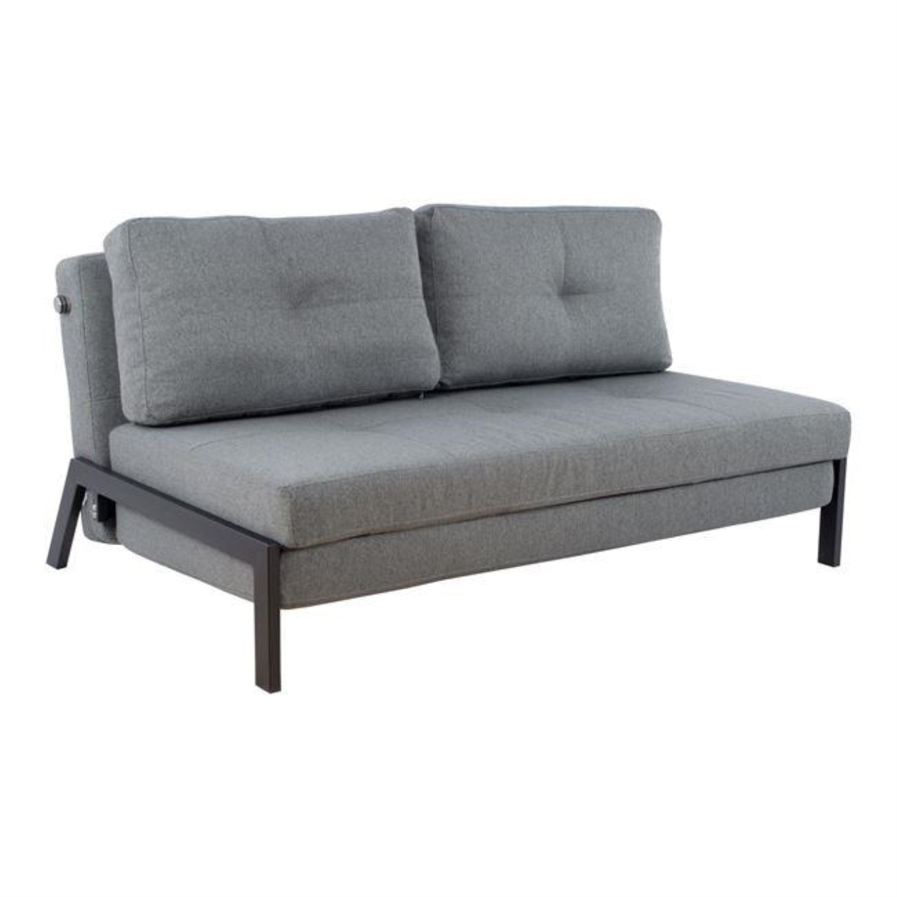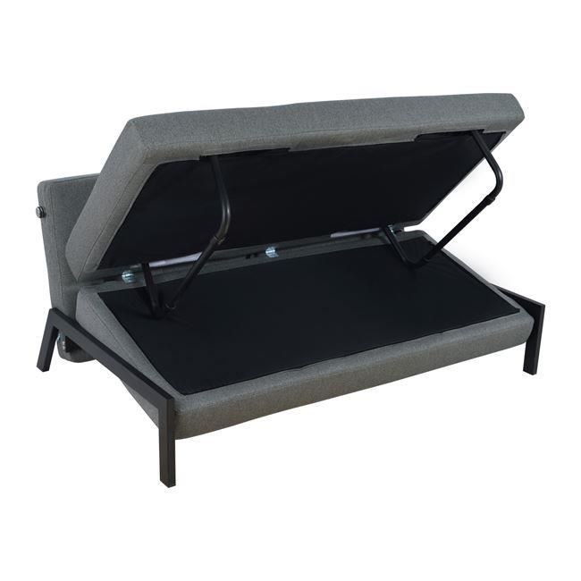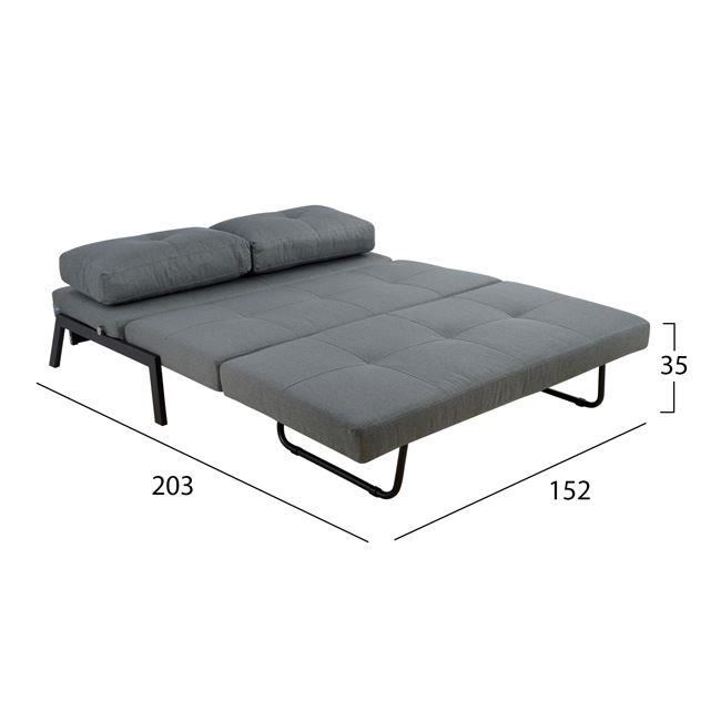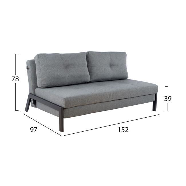 Canapea / pat 2 1/2 locuri cu țesătură bej, cu mecanism pentru pliere format din 3 părți.