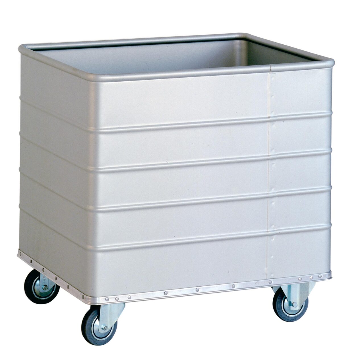 Cadru din aliaj ușor inferior. În jurul tamponului din aliaj ușor. 2 roți fixe și 2 rotative cu inel de cauciuc nemarcabil și carcase zincate.