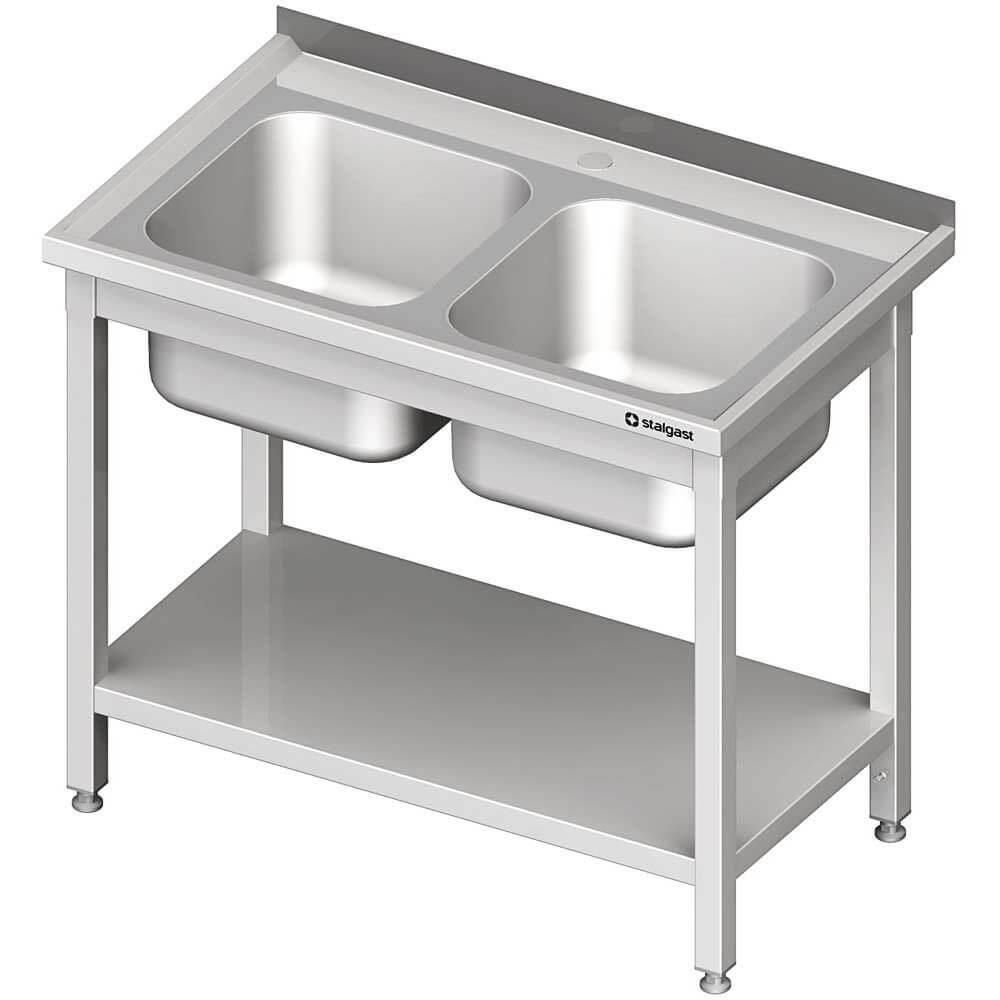 Chiuveta dubla pe suport deschis cu polita inferioara, 1000x600 mm