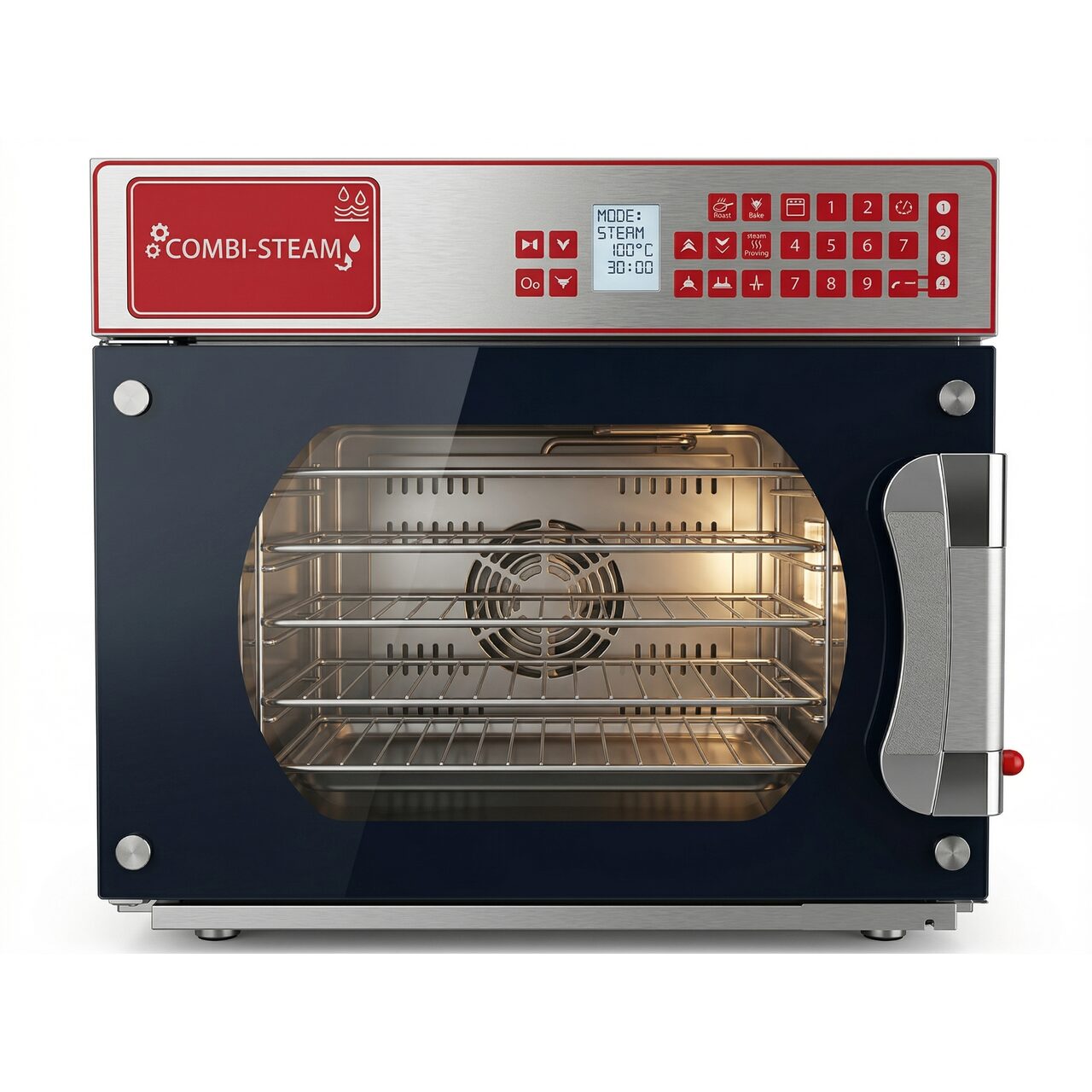 Cuptor convectie, control digital, structura inox, iluminare incorporata rezistenta la temperaturi ridicate, disipare a caldurii la 360° pentru a asigura disiparea colectiva a caldurii si prelungirea duratei de viata a aparatului, sticla securizata cu strat dublu de transparenta si translucida, izolatie de inalta rezistenta, picioare antiderapante, greutate neta 46.3 kg.