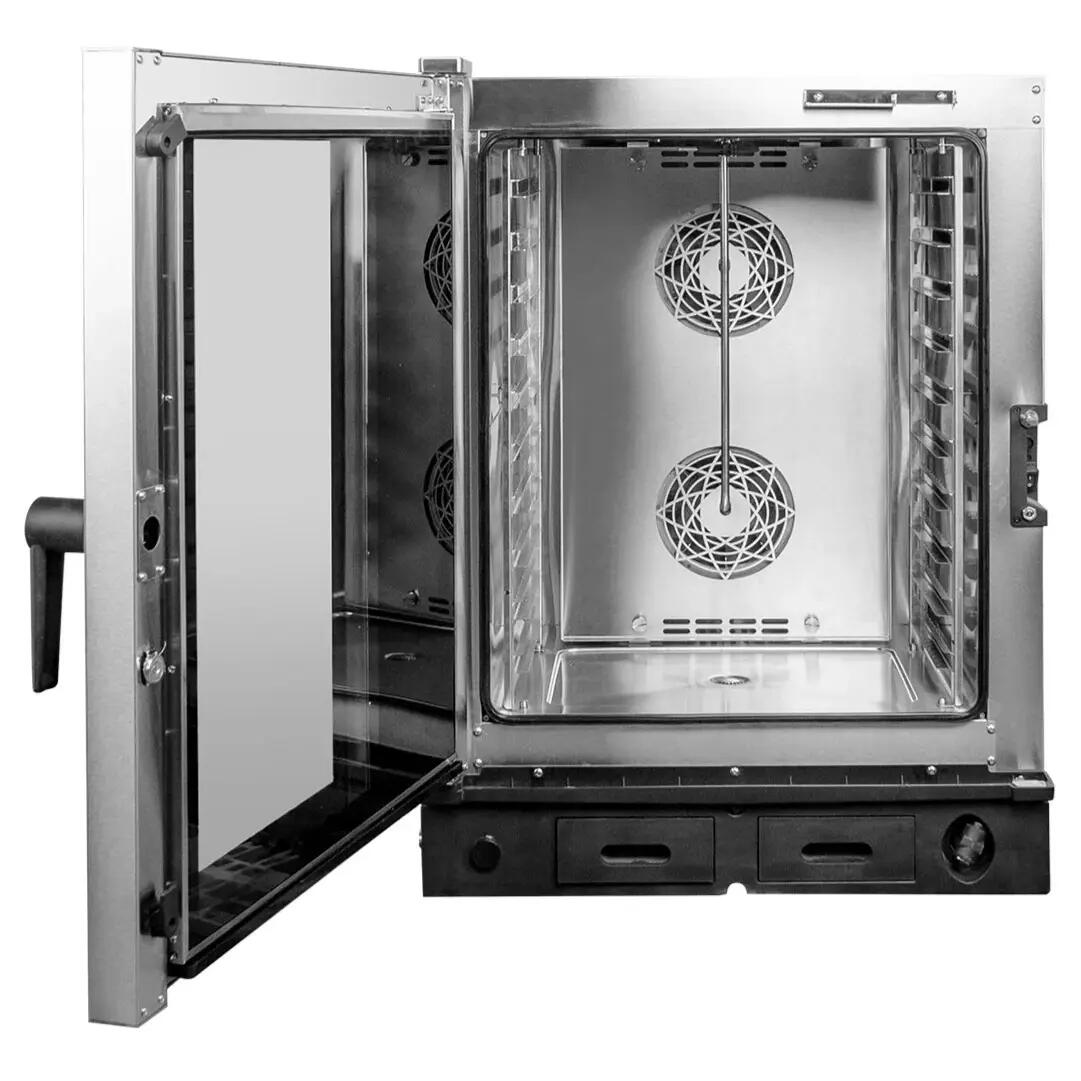 Cuptorul COMBI OVEN EPC-1011E2, cu o configurație impresionantă de 10 tăvi GN 1/1, reprezintă soluția supremă pentru bucătăriile mari și solicitante. Acest model combină tehnologia avansată cu o capacitate generoasă, făcându-l ideal pentru profesioniștii care nu fac compromisuri în ceea ce privește performanța și calitatea preparatelor.