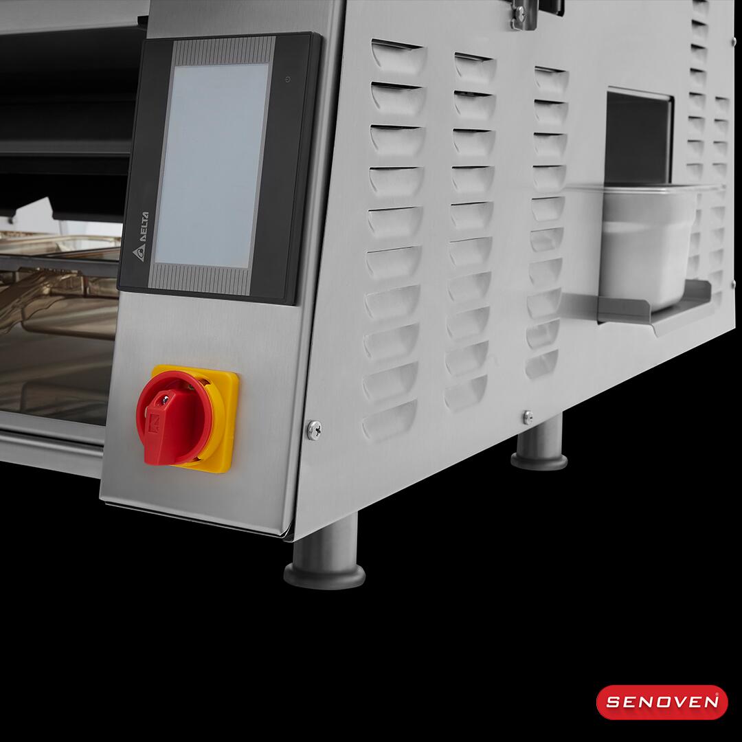 Panoul tactil controlat prin microcipuri al grătarelor automate Senoven vă permite să controlați rețetele pentru întreaga operațiune, salvând durata și temperatura de gătire pentru fiecare produs.