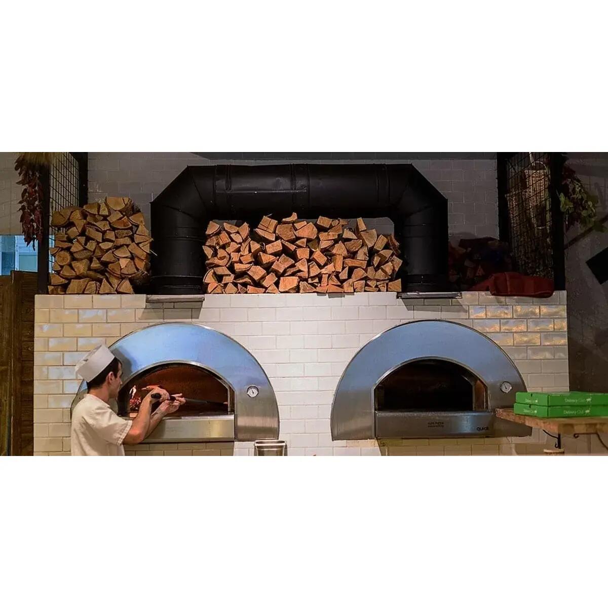Quick este cel mai mare cuptor comercial mobil cu lemne. Disponibil și în versiunea superioară fără baza cu roți, Quick atinge 450°C în doar 40 de minute, mai rapid decât orice alt cuptor cu lemne pentru pizzerii.Quick poate găti până la 110 pizza pe oră, o pizza în doar 2 minute! Structura din oțel inoxidabil din fagure din camera de ardere face cuptorul ușor și robust, perfect gata pentru a fi amplasat într-un restaurant sau într-o pizzerie. Datorită roților sale, acest cuptor comercial pentru pizza poate fi mutat afară vara și în interior în timpul iernii sau când nu este folosit.