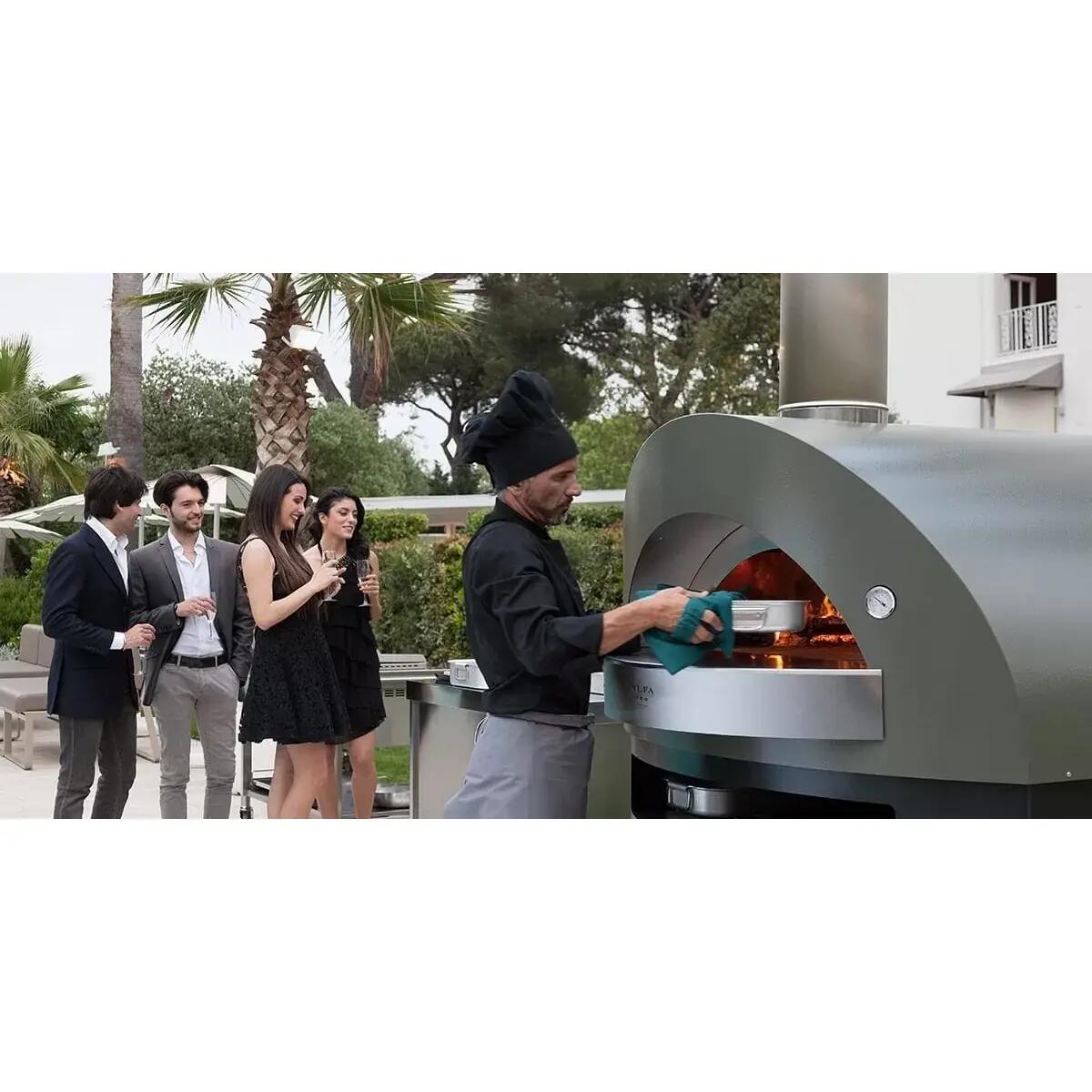 Opera este cel mai mare cuptor profesional cu ardere pe lemne din gama Alfa Pro. Disponibil și în versiuni pe gaz, acest dispozitiv este perfect pentru cei care doresc un cuptor profesional care oferă aromă tradițională a unui cuptor cu lemne. Greutatea ușoară și cupola din oțel inoxidabil vă permit să economisiți costurile cu combustibilul. Acesta este un adevărat cuptor profesional cu lemne, care gătește până la 150 de pizza pe oră. Atât versiunile din lemn, cât și pe cele pe gaz sunt prevăzute cu un arzător de 30 Kw, care poate fi instalat sub capotă, fără a fi instalate lucrări în restaurantul sau în pizzeria ta. Opera este perfectă pentru pizza și mult mai multe …. Fripturi, fructe de mare sau orice alt fel de mâncare.
