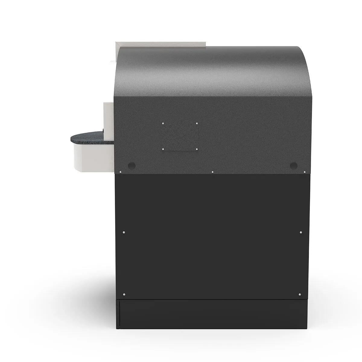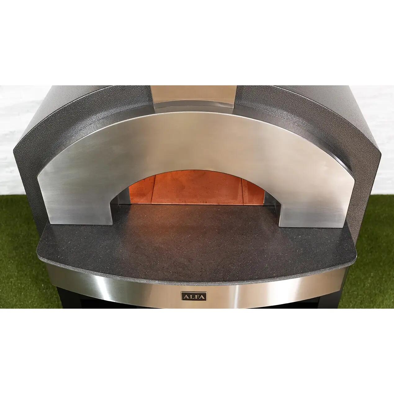 Cuptor pe vatra compact perfect pentru interior si exterior cu structura din otel inox si cupola acoperita cu starturi de vopsea, Pragul din otel inox si piatra vulcanica si deschiderea mare a usii faciliteaza mentinerea caldurii, Capacitate totala 6 pizza, Dimensiuni pizza 33 cm, Productivitate 70 pizza/h, Baza din material refractar grosime 50 mm, vatra fixa, Camera de coacere din otel inox, Dimensiuni camera de coacere 1200x1100 mm, Temperatura maxima 500 grC, Timp incalzire 70 minute pentru a atinge 500 grC, Izolatia cu straturi triple din fibra ceramica a cupolei permite cresterea rapida a temperaturii si mentinerea caldurii mai mult timp, Panou de comanda digital, Control temperatura camera cu ajutorul panoului de comanda, Buton de amplificare ce permite pornirea/oprirea pentru a doua flacara a arzatorului, Termometru digital, Panou de control lateral amplasat pe suport, Interfata intuitiva cu 6 moduri de functionare pentru un control absolut al caldurii, Arzatoare verticale de ultima generatie, cu flacara dubla, Termostat de siguranta, Usa prevazuta cu 2 manere laterale, Prevazut cu 2 hote: 1 in interiorul camerei de coacere optimizeaza circulatia aerului, 1 in arcul frontal reduce consumul, elimina excesul de umiditate si reduce perceptia caldurii in fata cuptorului, Evacuare diametru 200 mm, Suport inclus, Suport acoperit cu 2 straturi de vopsea, Dimensiuni aproximative suport 1400x1224x1000 mm, Prevazut cu 4 roti pivotante cu frana, Duza GPL inclusa, Alimentare pe gaz, Putere gaz 34 kW, Consum gaz 2.98 mc/h / Consum GPL 3 kg/h, Greutate neta 549 kg, Dimensiuni 1400x1560x1850 mm.