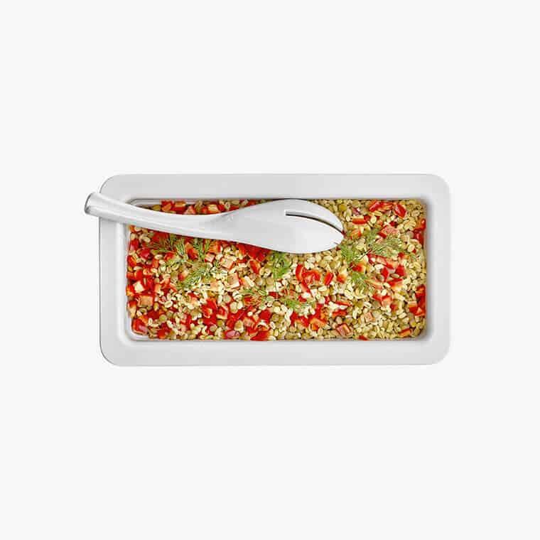 Cuva din melamina GN 1/3, culoare alba, rezista la temperaturi -20/+100 °C, se poate spala in masina de spalat vase.