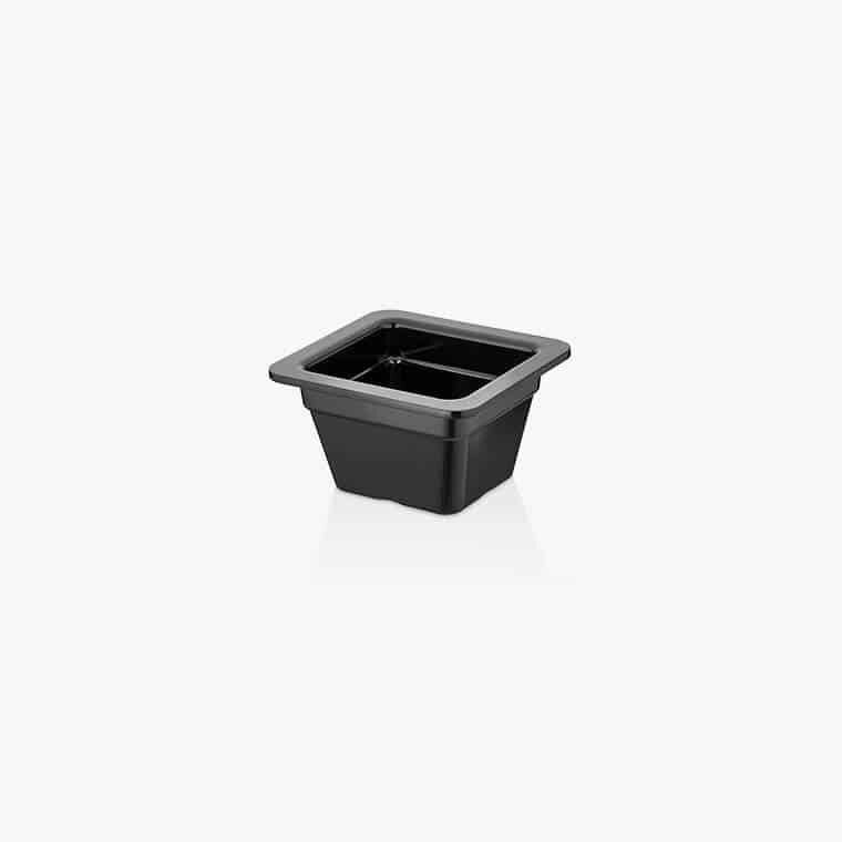 Cuva din melamina GN 1/6, culoare neagra, rezista la temperaturi -20/+100 °C, se poate spala in masina de spalat vase.