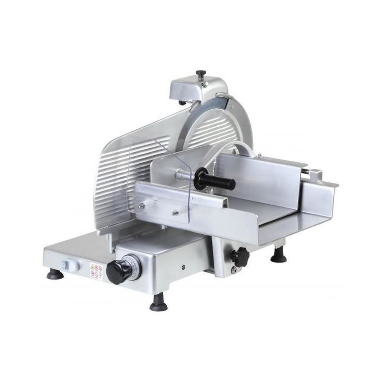 Feliator vertical de carne cu diametrul lamei Ø300mm, structura aluminiu, dispozitiv pentru ascutit discul inclus, motor silentios, lama din otel forjat, dimensiunea de feliere 0-16 mm, dimensiune platan 270x290 mm, dispozitiv de siguranta la motor.