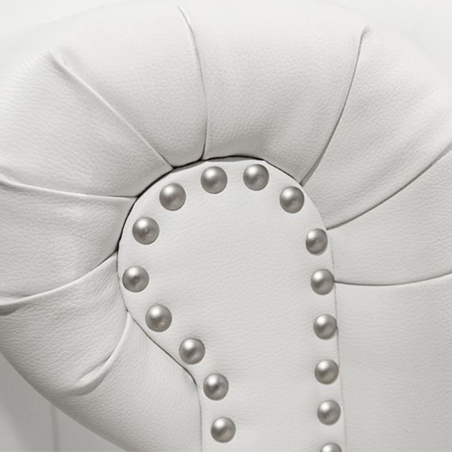 Fotoliu din piele de calitate superioară cu cadru din lemn armat în interior și pe picioare.