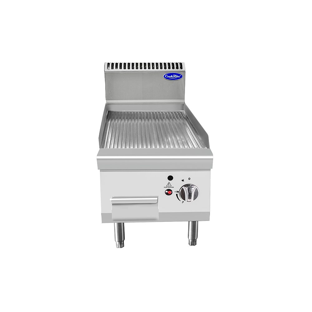 Gratar cu placa striata, structura inox, suprafata de gatit ajustabila in inaltime, sertar colectare grasimi, aprindere piezoelectrica, picioare reglabile pe inaltime.