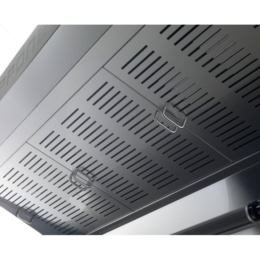 Ideală pentru utilizare în restaurante, hoteluri și alte spații gastronomice profesionale, hota Cuppone Donatello se potrivește perfect deasupra cuptoarelor profesionale, plitelor și stațiilor de gătit, asigurând evacuarea eficientă a fumului și a mirosurilor. Este de asemenea potrivită pentru spații deschise sau bucătării cu un volum mare de preparare a alimentelor, contribuind la menținerea unui standard ridicat de igienă și confort.