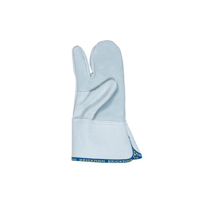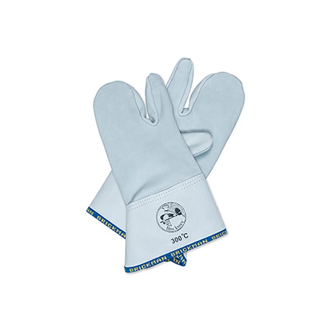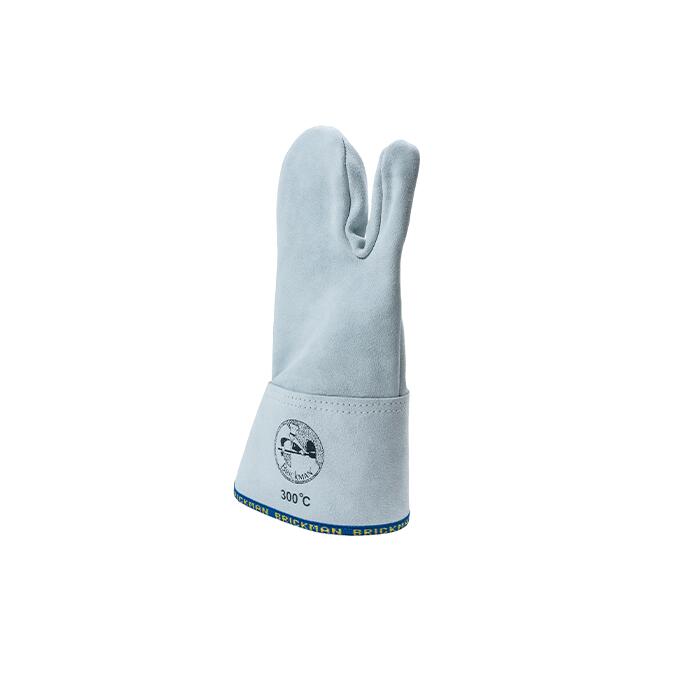Mănuși pentru cuptor cu 3 degete realizate din piele tăbăcită conform unei rețete speciale rezistente la căldură (300 °C).