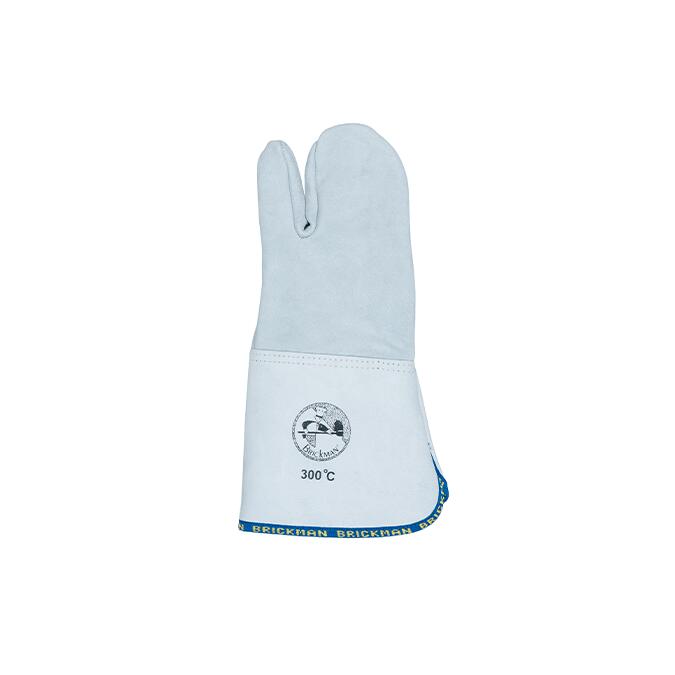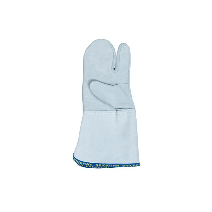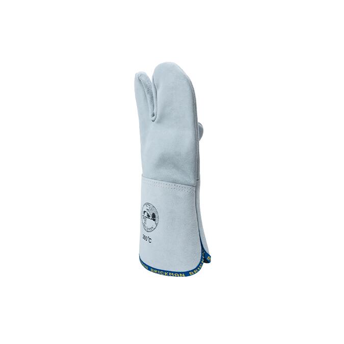 Mănuși pentru cuptor cu 3 degete realizate din piele tăbăcită conform unei rețete speciale rezistente la căldură (300 °C).