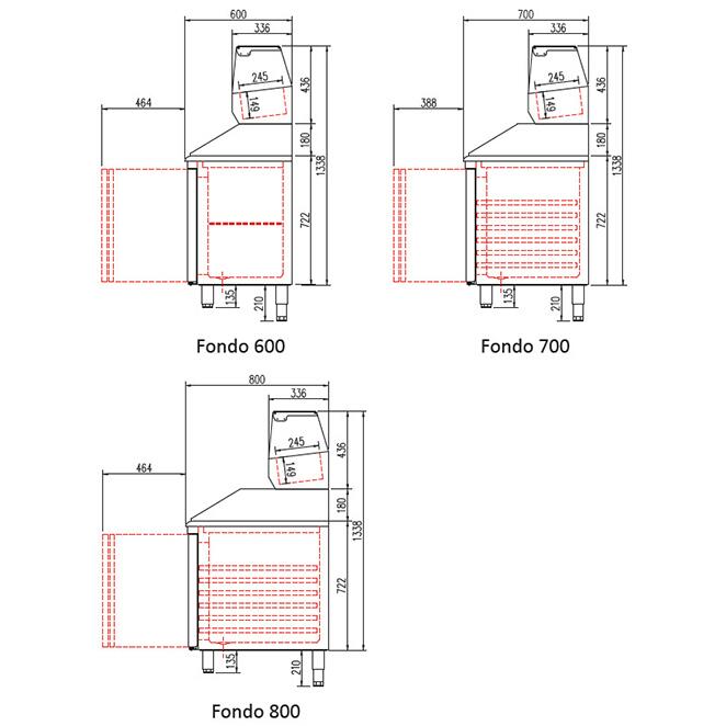 Masa preparare pizza cu blat granit+vitrina refrigerata, capacitate 399 Lt - Coreco