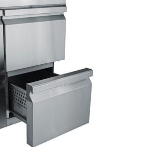 Masa rece cu 8 sertare, capacitate 695 Lt, izolație cu poliuretan ecologic de 5cm, control digital, gaz refrigerant R290, temperatura 0/+10°C, control digital, decongelare automata, picioare reglabile pe inaltime.