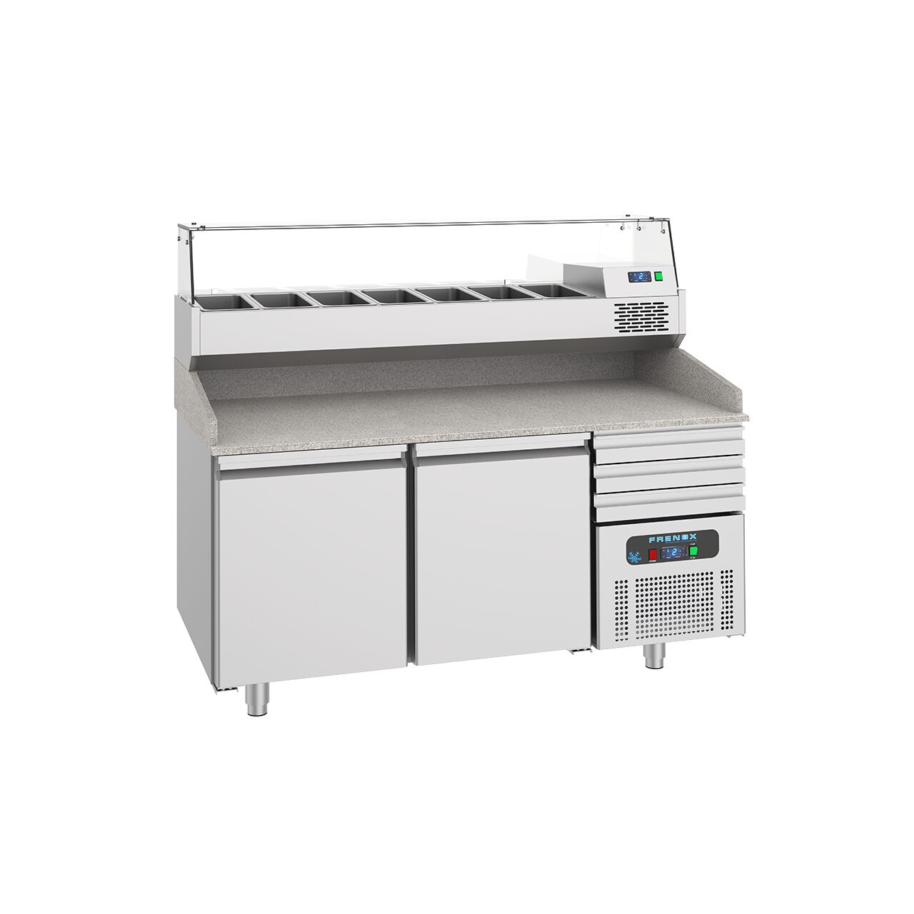 Masa rece de pizza pentru prepararea aluatului este un echipament care nu poate lipsi din nicio bucatarie profesionala care isi doreste sa obtina rezultate remarcabile. Fie ca vorbim despre restaurante, autoserviri, cantine, fast food-uri sau alte tipuri de unitati de alimentatie publica, daca acestea au in meniul lor pizza si produse de patiserie, vor avea nevoie de un loc special unde sa o prepare. Este o alegere perfecta pentru pastrarea in cele mai bune conditii a ingredientelor feliate, oferind eficienta maxima si siguranta alimentara in activitatea de preparare a mancarurilor. Echipamentul este indispensabil in orice pizzerie, avand o dimensiune de 160x80x108 cm, o capacitate de 380 lt si o putere de 0,20 kW.