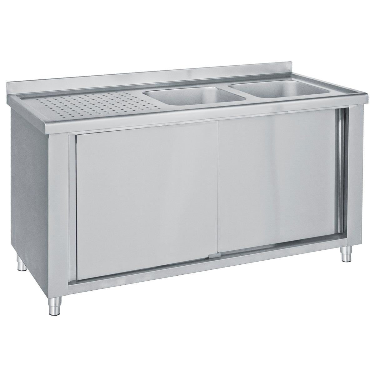 Masa tip dulap cu 2 cuve (500x500x300), usi glisante, inaltator la perete, structura inox, fara partea din spate, picioare reglabile in inaltime.