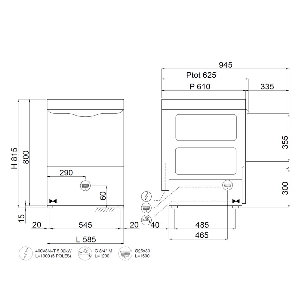 Dozatorul electric dublu standard de agent de clătire și detergent asigură o igienă maximă la fiecare ciclu de spălare cu mari economii: brațele de spălare și clătire turnate asigură fiabilitate și durabilitate. Caroseria este realizată în întregime din oțel AISI 304 și a fost proiectată cu toate componentele din față pentru asistență tehnică ușoară. Este o masina de spălat vase robusta și de încredere care face față in fiecare moment al zilei.