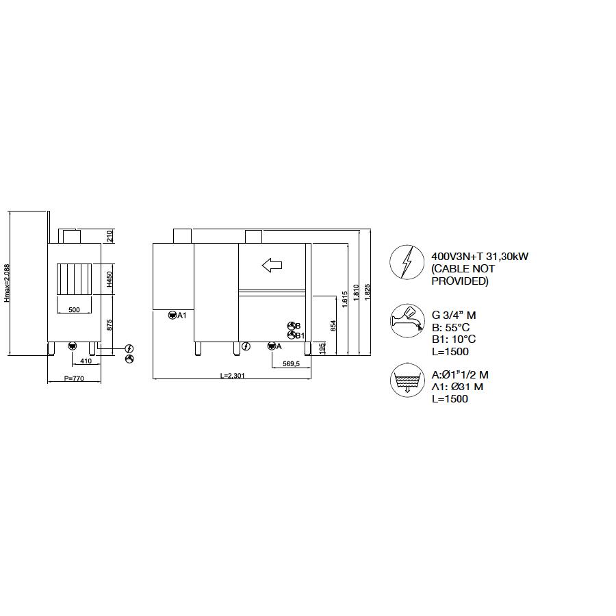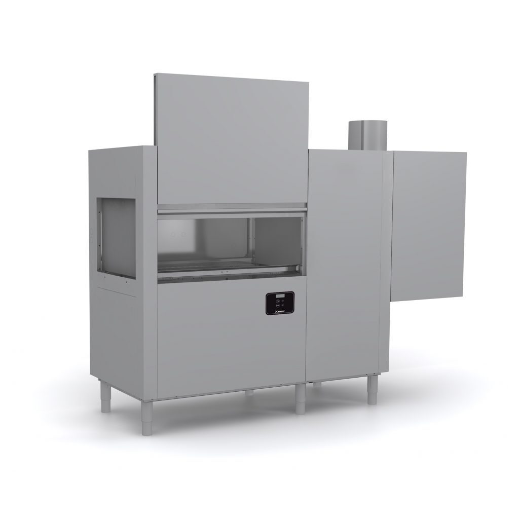 Masina de spalat vase tip tunel a fost concepută pentru a răspunde nevoilor fiecărui client, datorită diverselor accesorii , combinând sarcini mari de lucru și optimizând spațiile disponibile, simplificând munca operatorului și reducând consumul. Acest model este echipat cu un sistem dublu de filtrare care reține toate reziduurile, în timp ce pompele de spălare verticale și brațele de spălare din oțel inoxidabil asigură performanțe deosebite. Masina de spalat vase este echipata si cu usi contrabalansate cu perete dublu si sistem anti-cadere si rezervoare turnate rotunjite.