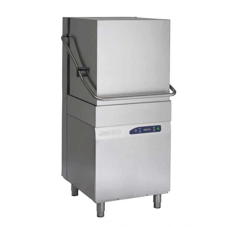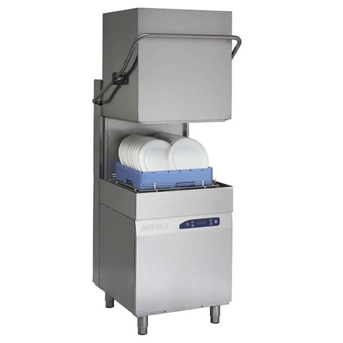 Masina spalat vase cu capota, structura inox AISI 304, interior complet din inox AISI304, boiler din inox AISI 304, dimensiune cos 50x50cm, dimensiune maxima la farfurii de Ø 44 cm si pahare de H 41.5 cm, incap tavi GN 1/1, 4 cicluri de spalare: 60″- 120″- 180″ – 9′, productivitate 60 – 30 – 20 – 7 cosuri/ora, cantitatea de apa pe ciclu 2,5 Lt, panou de control electronic, pompa de spalare 1300W, tehnologie multipower, posibilitatea de pornire automata a ciclului de spalare prin inchiderea capotei, sistem de deschidere a capotei cu arcuri, bratele de spalare/clatire superioare și inferioare din inox AISI304, capacitate boiler 8 Lt, capacitate cuva spalare 40 Lt, umplere automata a apei, temperatura de spalare si clatirie controlate de termostat, pompa de spalare verticala cu auto-curatare, buton evacuare apa.