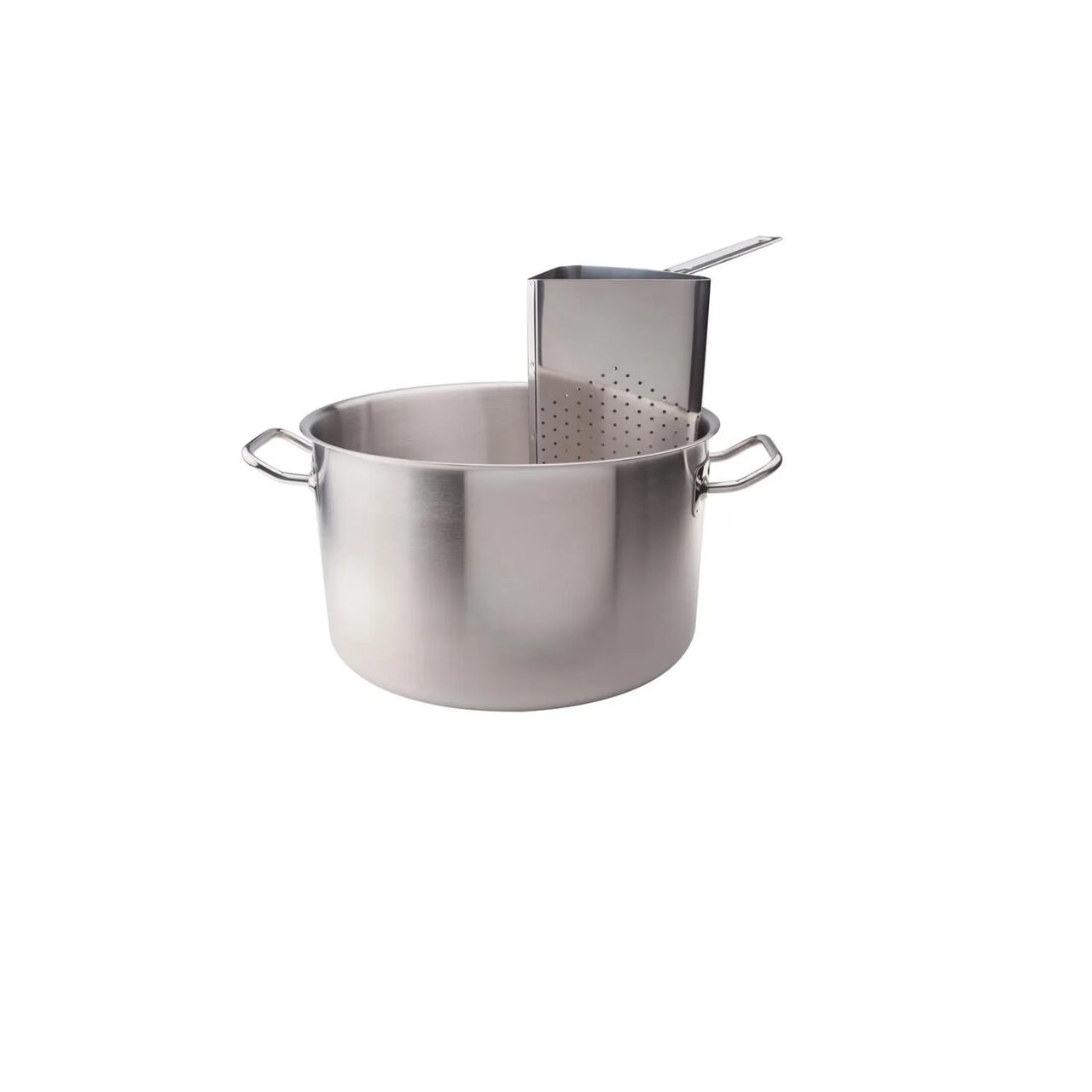 Oala inaltă din oțel inoxidabil Pentole Agnelli cu 4 strecurători este compusă dintr-un corp și mânere din oțel inoxidabil 18/10 și o strecurătoare cu 4 laturi, tot din oțel inoxidabil; ideală pentru fierbere.