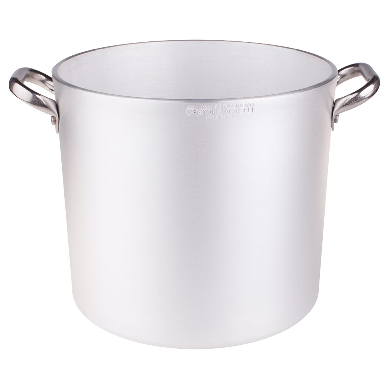 Oala înaltă din aluminiu de 3 mm de la Pentole Agnelli are două mânere din oțel inoxidabil fără nichel și un corp din aluminiu și este ideală pentru fierbere, albire, marinare și prepararea saramurilor.