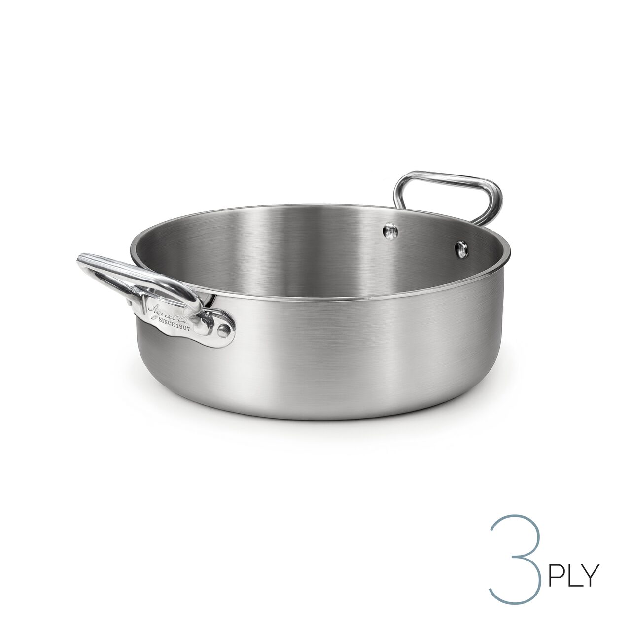 Oală joasă din aluinox cu finisaj satinat, cu 3 straturi – 2 mânere din oțel inoxidabil Ø16 cm