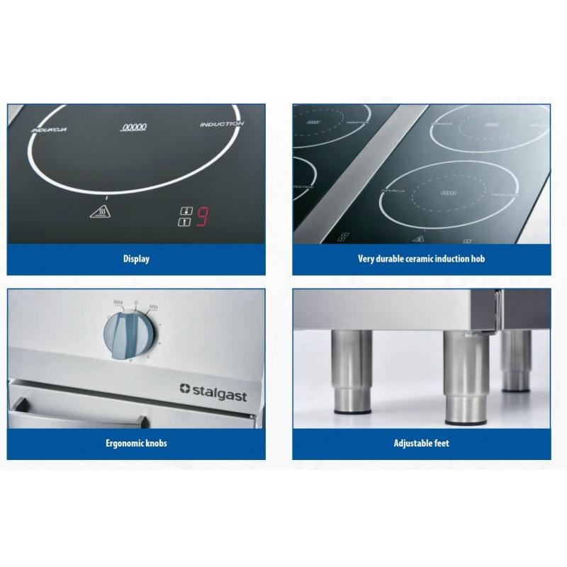 Mașina de gătit are un design modern, este prevăzută cu butoane ergonomice și sistem de protecție a aparatului prin panoul de control, iar detaliile de pe panoul frontal sunt gravate cu laser, rezistând mai bine în timp. Plitele cu inducție ceramică sunt durabile și au un diametru de 250 mm, sistem de recunoaștere a vaselor de gătit și sistem automat de protecție la supraîncălzire. Variantele fără grilaj de ventilație permit lucrul cu ustensile cu diametrul mai mare.