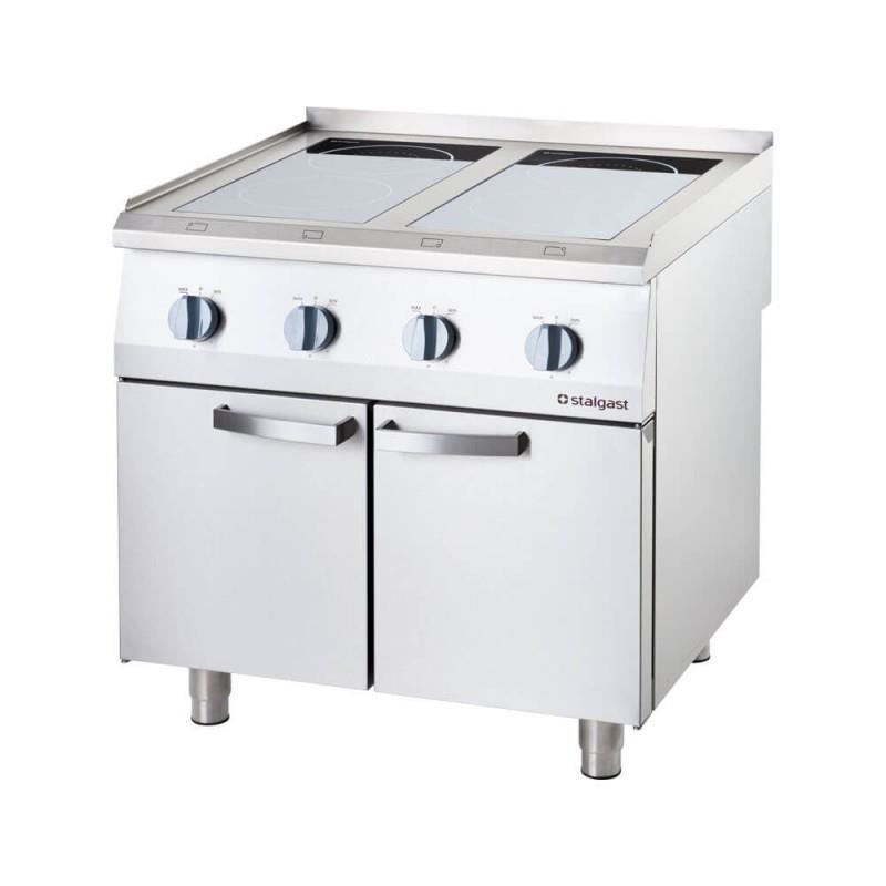 Plită vitroceramică profesională, 4 plite, este produsă de Stalgast în Polonia și este destinată procesării termice a alimentelor în diverse tipuri de bucătării profesionale. Plita este electrică, cu alimentare de 400V și putere electrică de 14 kW. Tehnologia folosită la plitele cu vitroceramică prezintă consum redus de energie. Este ideală pentru unitățile de catering mici, medii și mari.