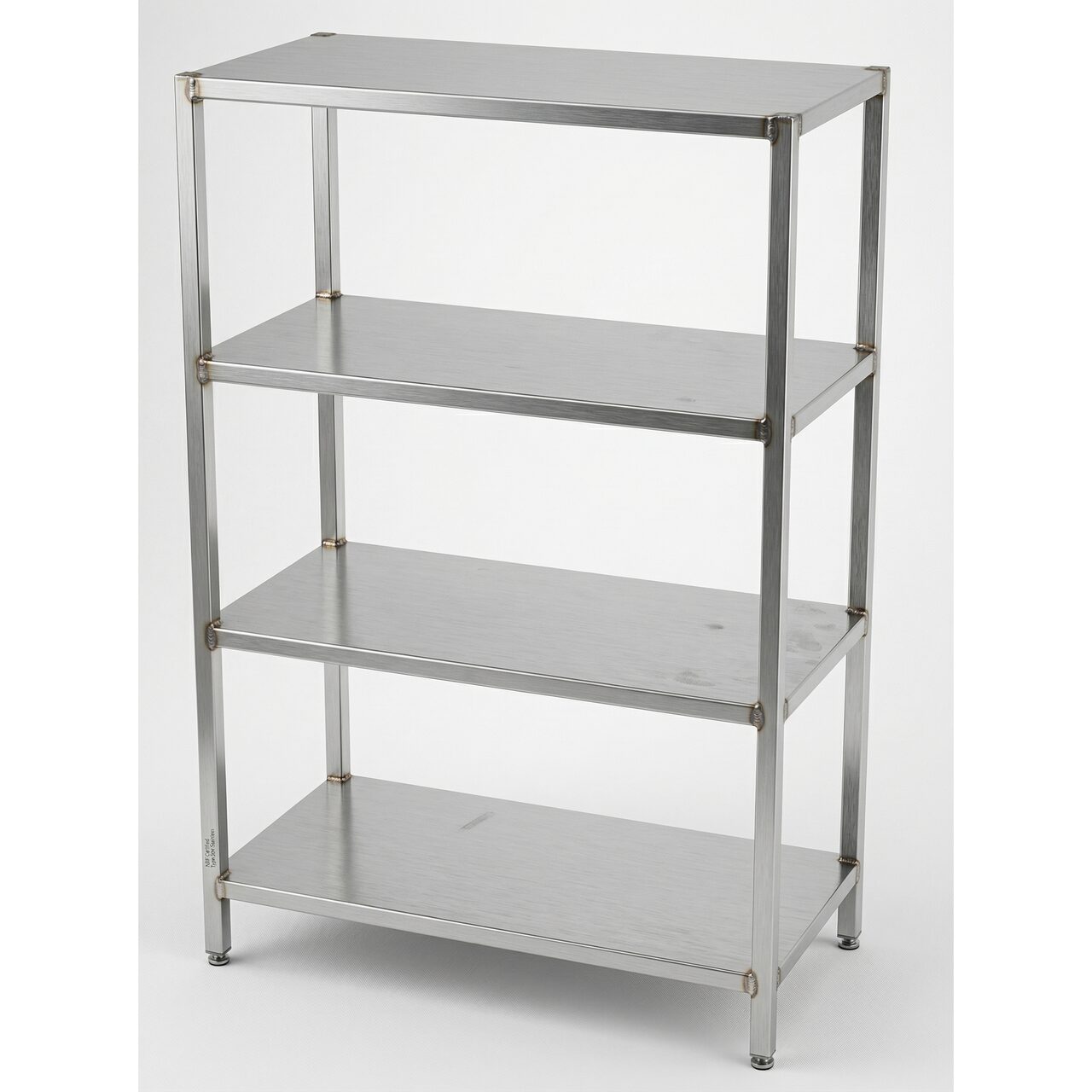 Rastel cu 4 polite pline, structura inox, distanta intre polite 400 mm, greutate maxima de incarcare: 85Kg/polita.