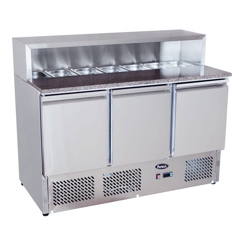 Salatiera refrigerata cu 3 usi si blat marmura, 380 lt - Atosa