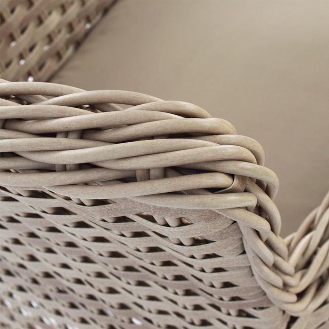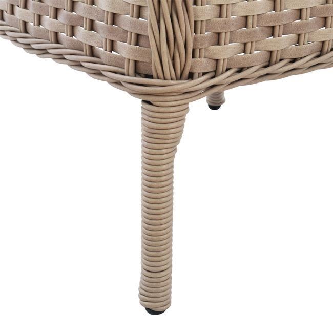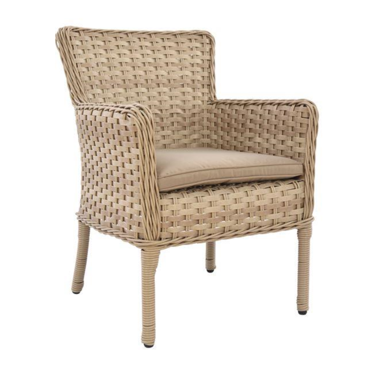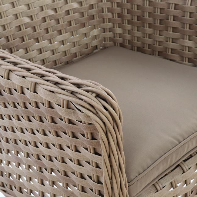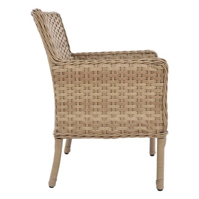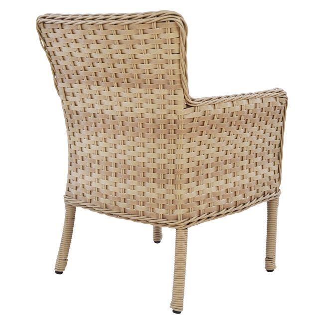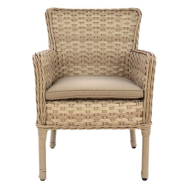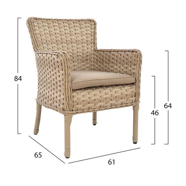 Scaun cu manere pentru exterior, contine o perna iar scheletul este format din aluminiu.
