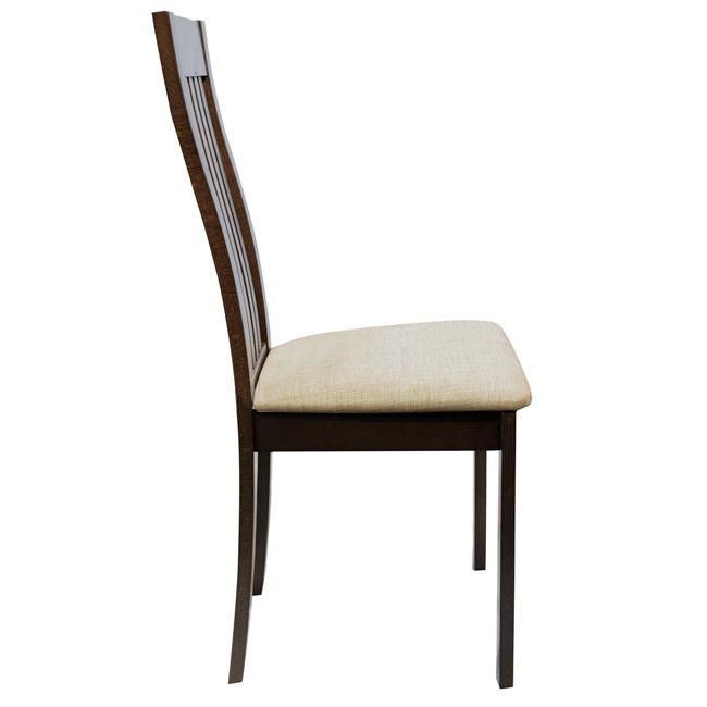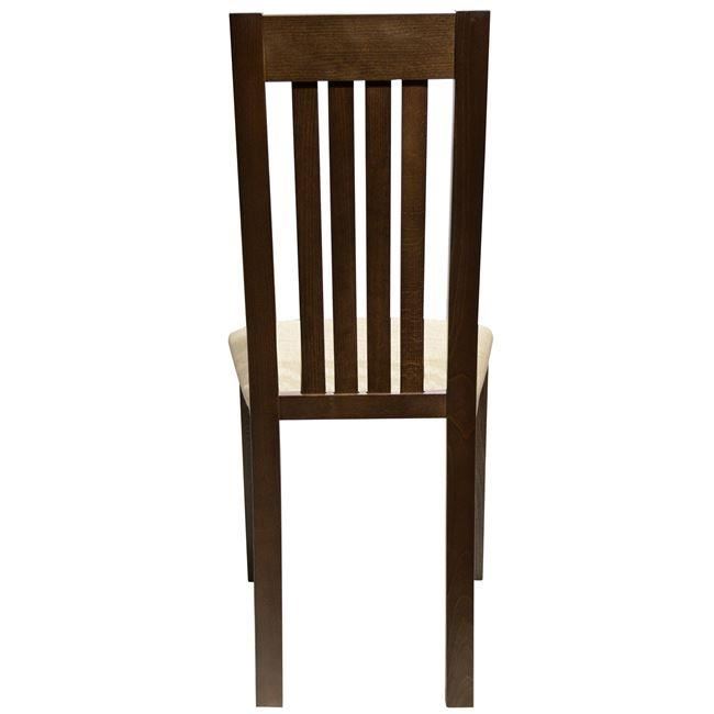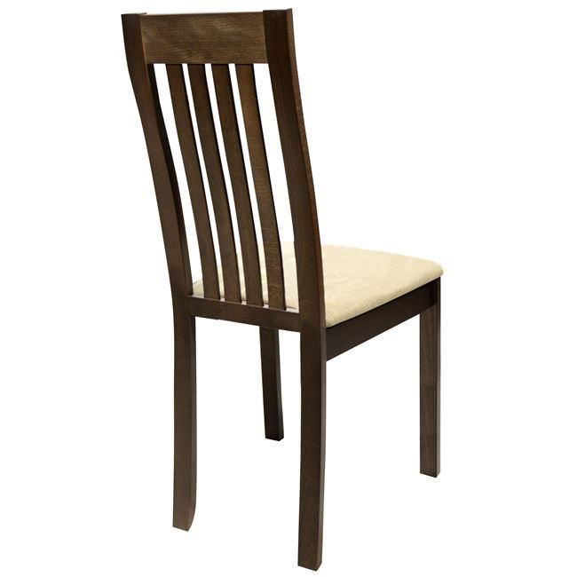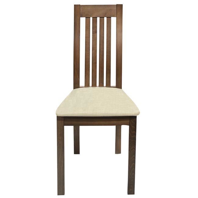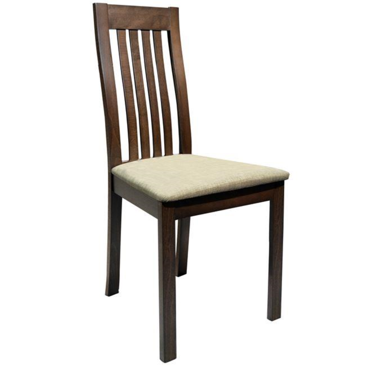 Scaun din lemn masiv (nuc) in culoare naturala, cu tesatura pe sezut de culoare crem.