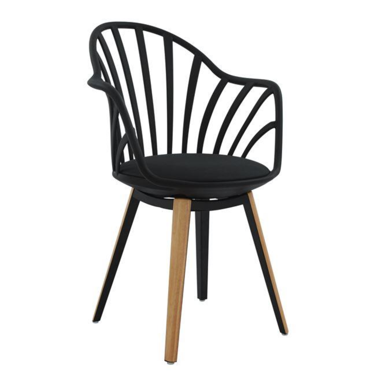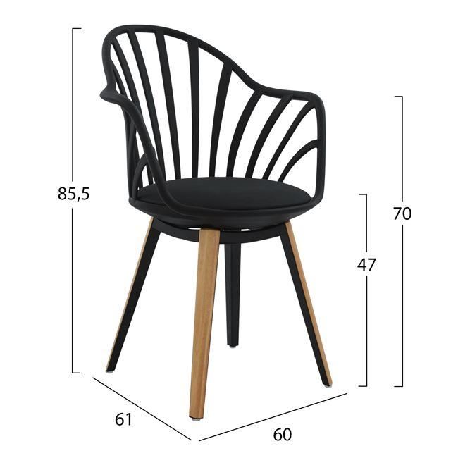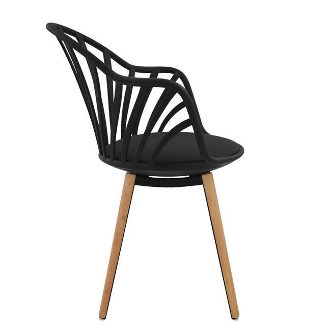 Scaun din polipropilena Anais cu perna din piele PU de culoare neagra pe sezut.