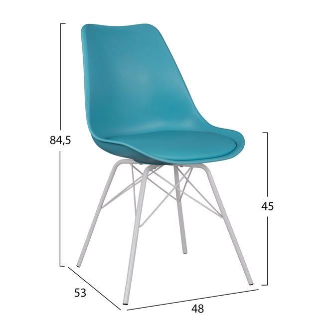 Scaun modern cu sezut si spatar din polipropilena, perna din piele sintetica pe sezut si picioare metalice.
