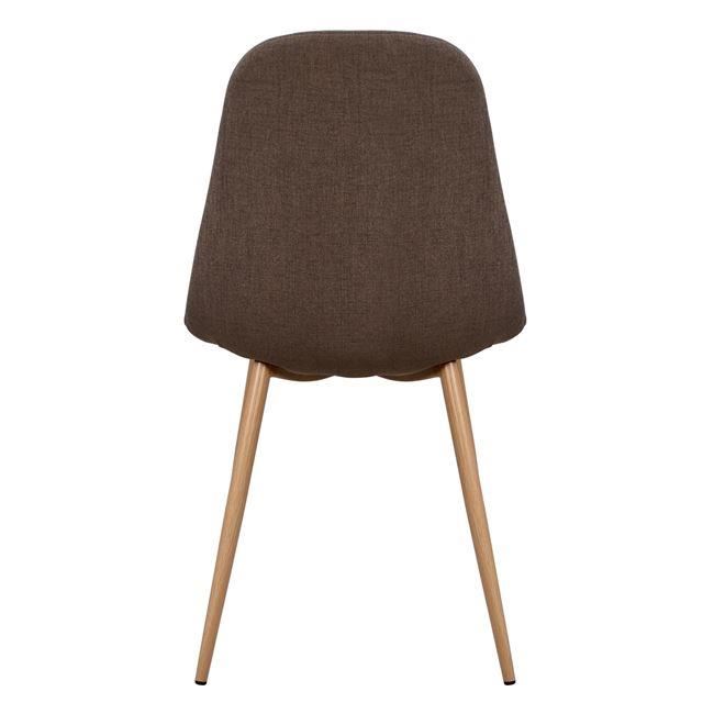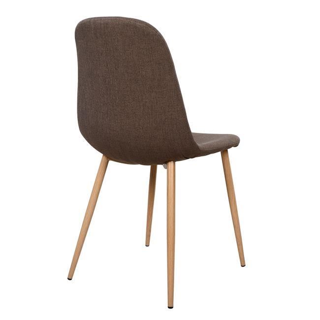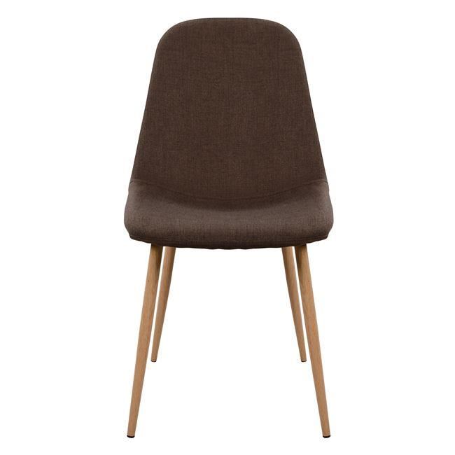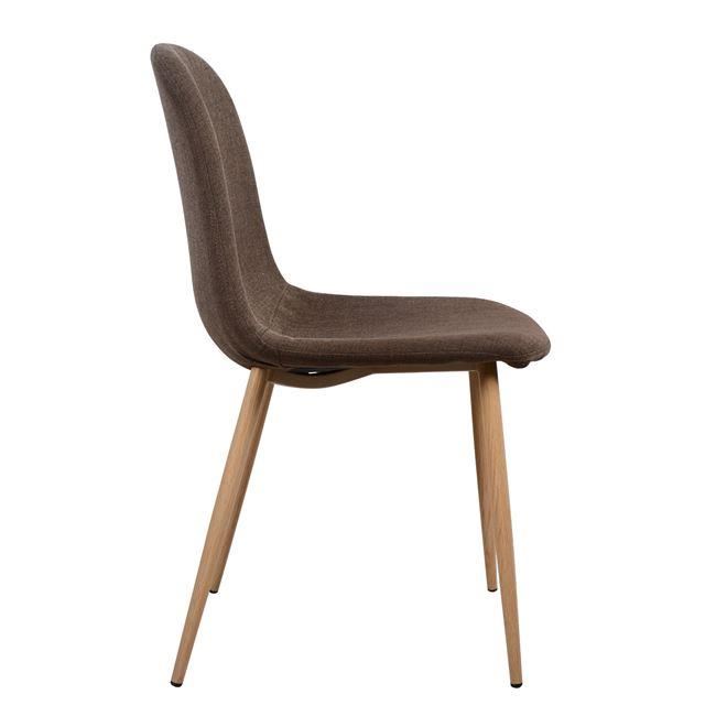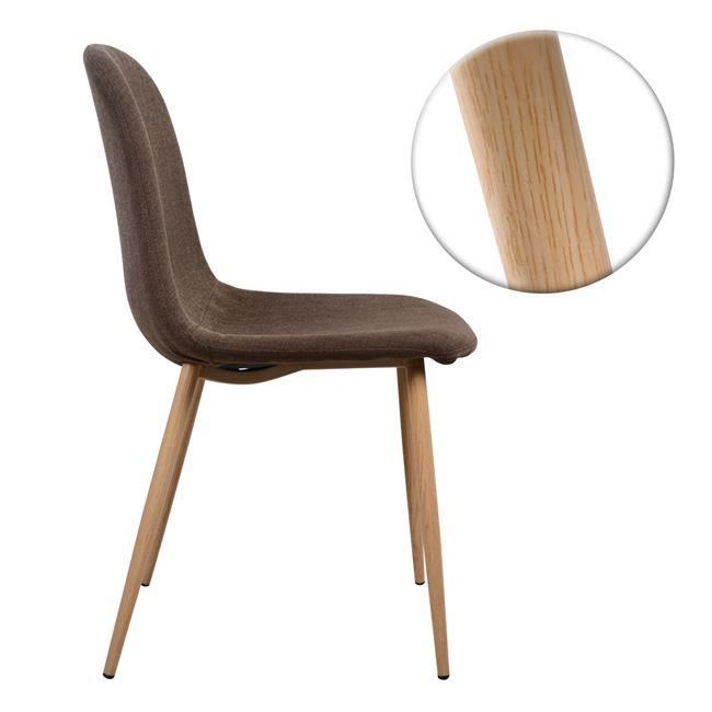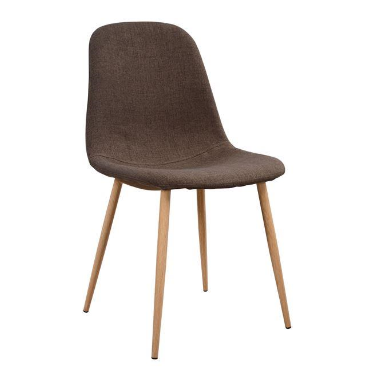 Scaun modern cu picioare metalice vopsite in culoarea lemnului, acoperit cu tesatura de culoare maro. Usor dar in acelasi timp rezistent, acest scaun este perfect pentru sala de mese, camera de joc sau birou.