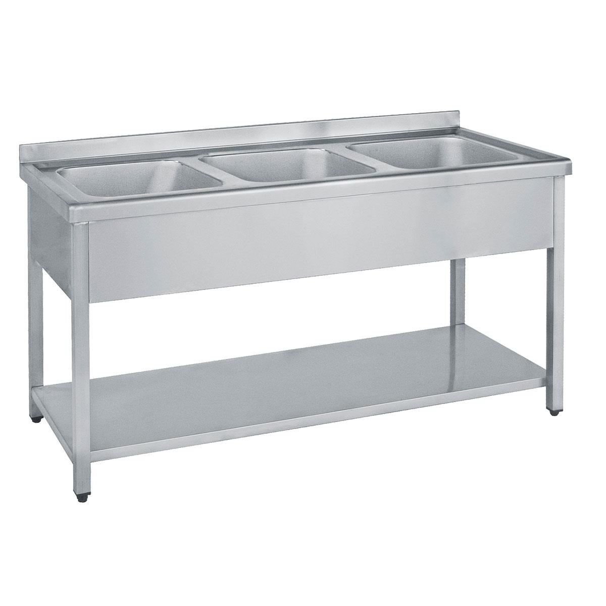 Spalator din inox cu 3 cuve pe suport deschis Gama 700 - Bambas Frost 180 cm