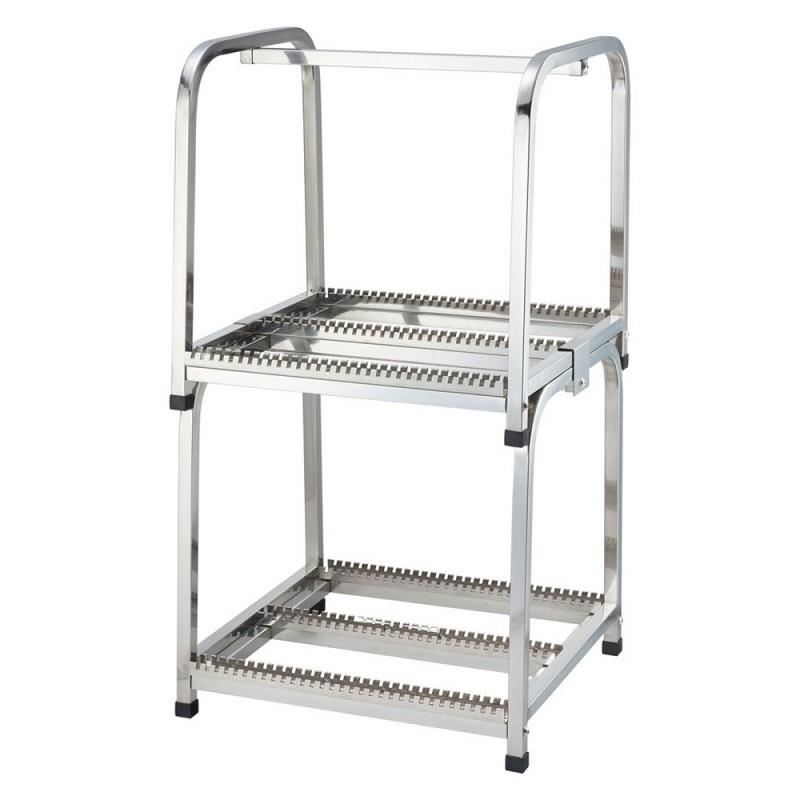 Suportul este realizat din inox, cu 2 rafturi pentru depozitarea containerelor GN 1/1 20mm și tăvilor de cu mărimile GN. Recomandată amplasarea raftului lângă o scurgere.