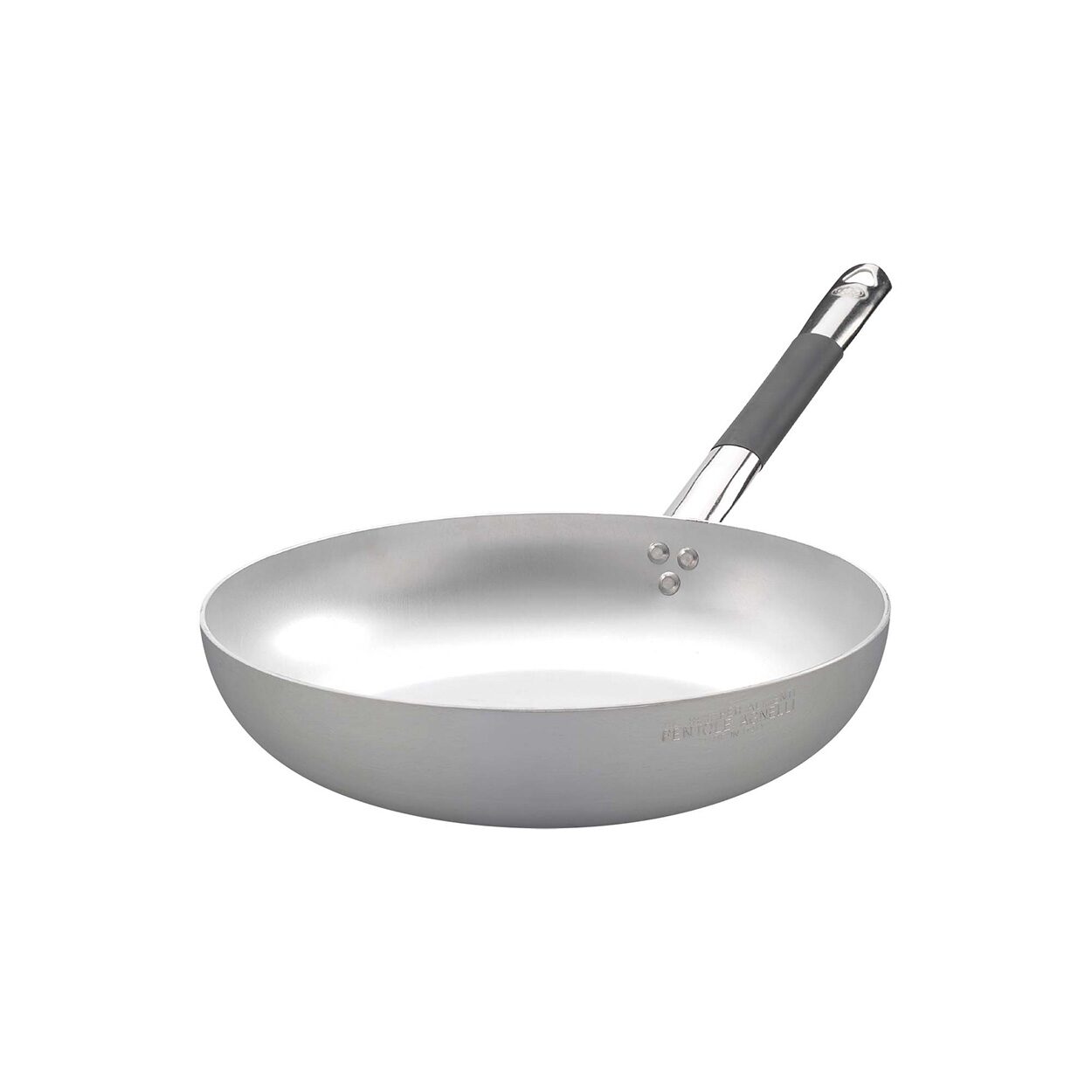 Tigaia evazată pentru inducție Pentole Agnelli din aluminiu de 3 mm cu mâner „cool” este alcătuită dintr-un singur mâner tubular „cool” din oțel inoxidabil fără nichel și un corp din aluminiu și este ideală pentru sotarea pastelor și deschiderea afinelor.