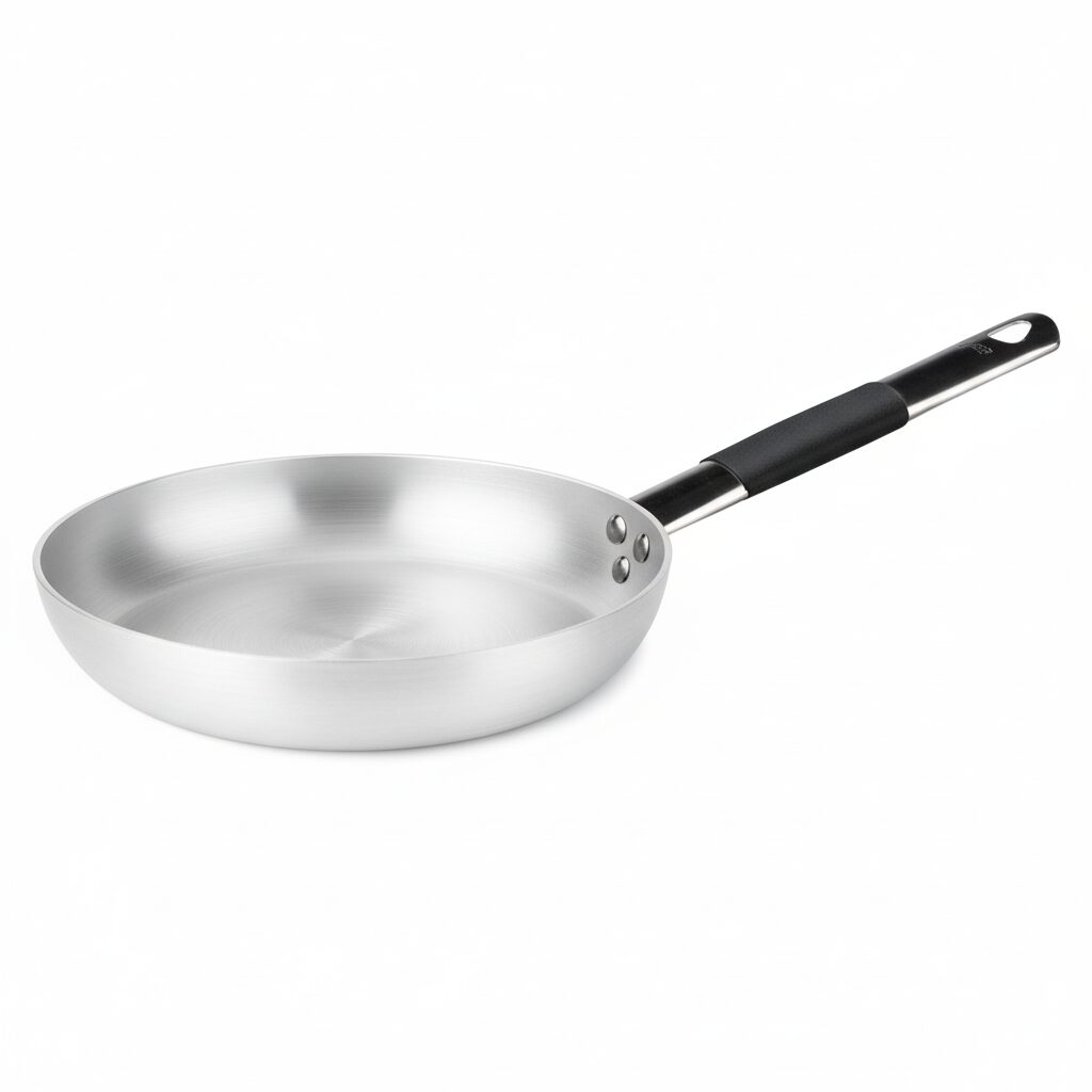 Tigaia joasă cu margini evazate este fabricată din aluminiu, un material utilizat pe scară largă în producția de ustensile de gătit din mai multe motive: