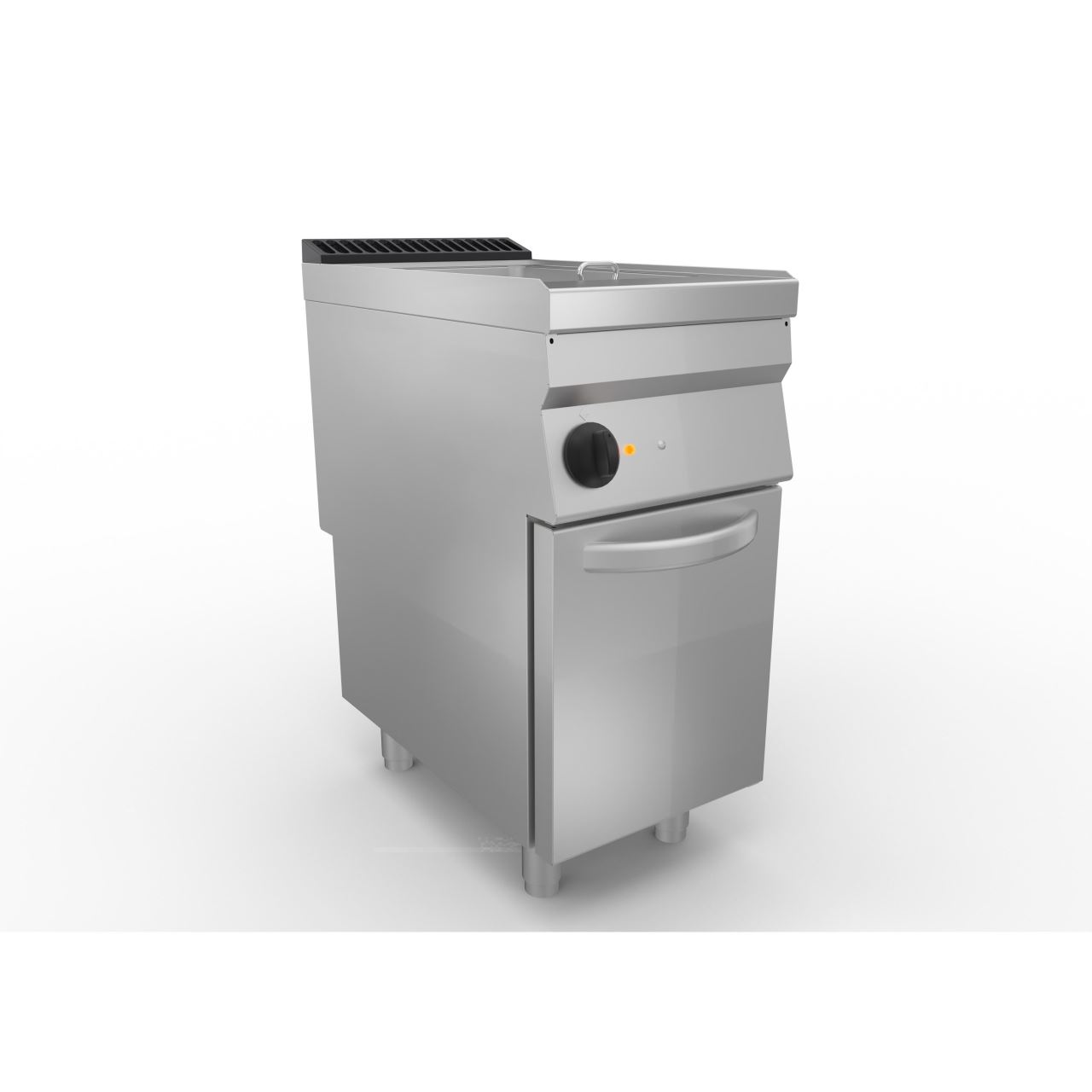 Tigaia multifuncțională este aparatul ideal pentru a fi folosit fie ca fry-top, fie ca tigaie multifunctionala și este echipata cu un rezervor din oțel inoxidabil AISI 304. Încălzit prin elemente de încălzire electrice controlate de termostat de siguranță și lumină pilot. Rezervorul este golit printr-un dispozitiv adecvat de scurgere dimensionată, închisă cu un dop din oțel inoxidabil.