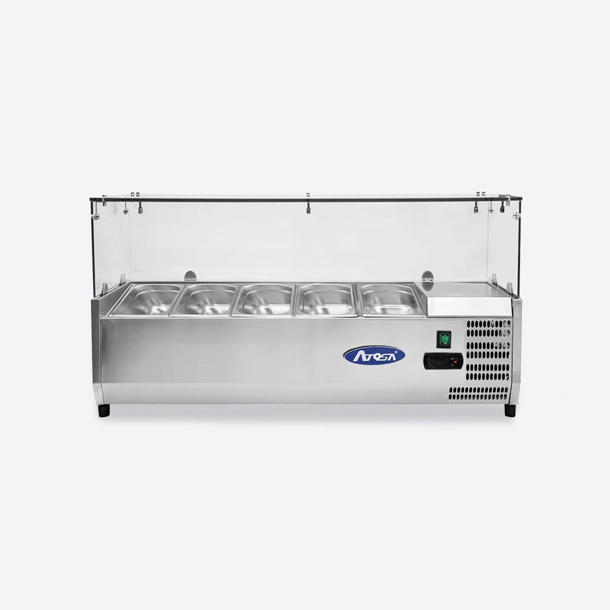 Compactă și Convenabilă: Vitrina frigorifică de 1.2 metri din seria ESL, cu dimensiunile eficiente de 1205 mm x 335 mm x 255 mm și o capacitate de 32L, este proiectată expert pentru pregătirea pizzei. Este dimensiunea ideală pentru bucătăriile unde spațiul este limitat, încăpând 5 tăvi GN 1/4, asigurând că toate ingredientele esențiale sunt la îndemână.